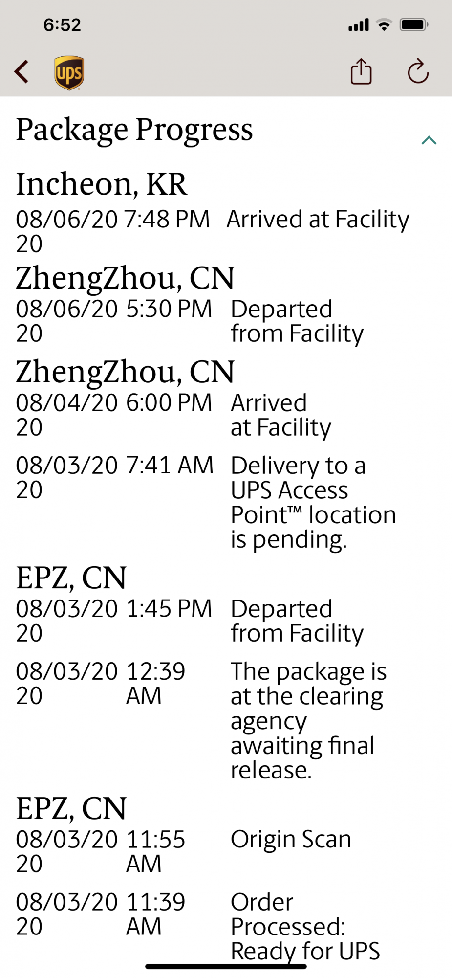 I would think that could be the reason. Probably an extra day or two for the engraving. Hopefully, yours will still get to Incheon today.mine arrived in ZhengZhou 08/05 at 4pm, somehow didnt make the cut to leave with yours on 08/06 5:30pm. also not fair i ordered mine 2 days before you. maybe its the engraving?
