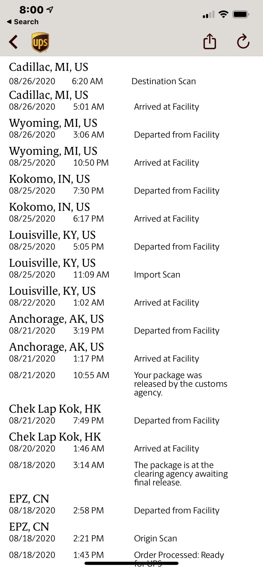 If I learned anything from Flightaware it's that UPS flights don't run when I think they should run. I mean, I get taking a Sunday off but Monday!? 😂Replying to myself, because shortly after I posted this, it flipped to Preparing to Ship! Ordered July 31, arrival window Sept 1 - 9. I can't wait for a tracking number! Let's hope it doesn't lounge around in customs in China, and then in Alaska, like my Apple Pencil did last week.