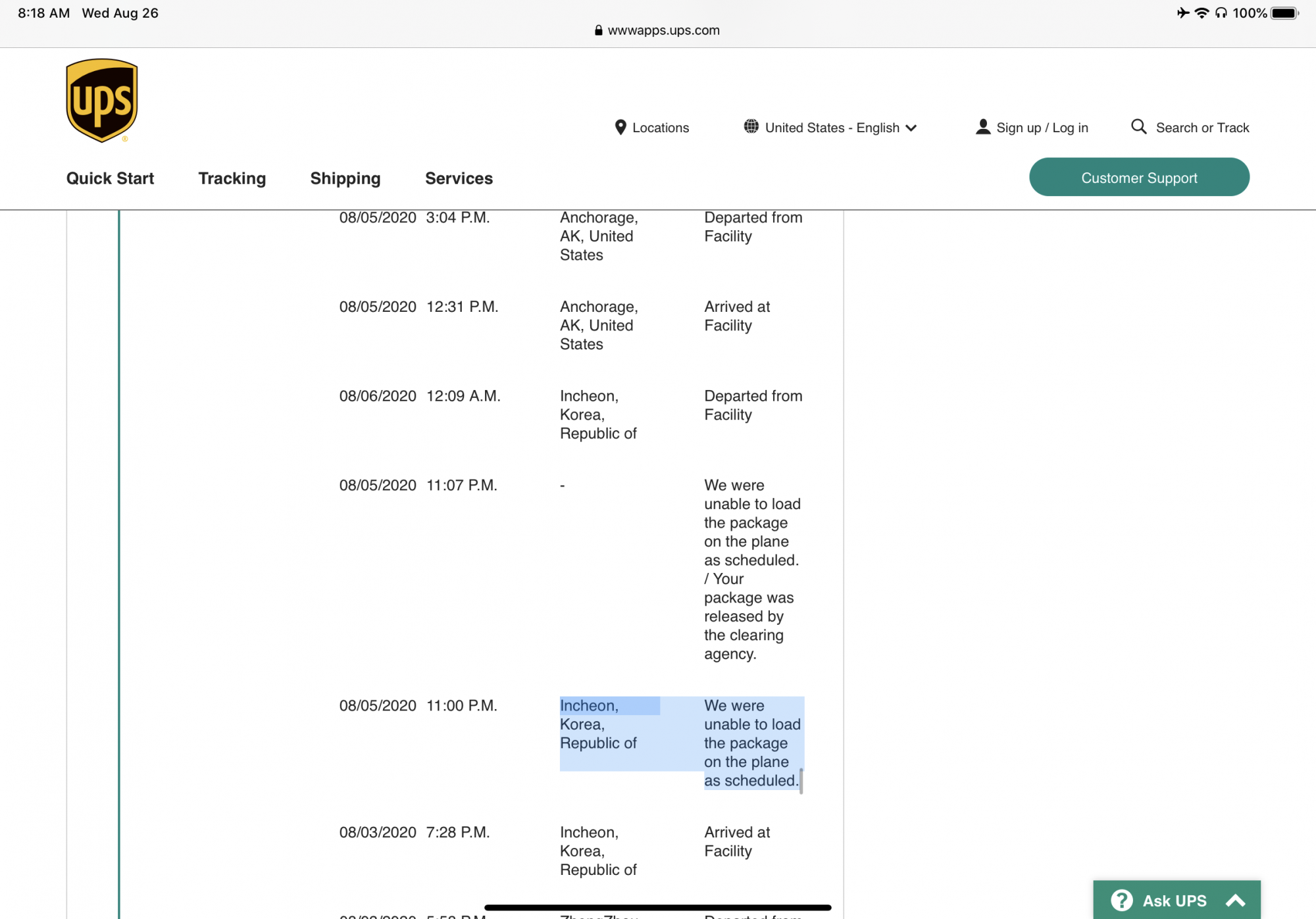 Yeah lol. UPS did the same when mine was in Incheon.Funny thing is, the scheduled delivery date had temporarily disappeared but is now showing today again during the same time range! Could this be a possible mis-scan and it actually did make the flight!? Although it's also showing this now: