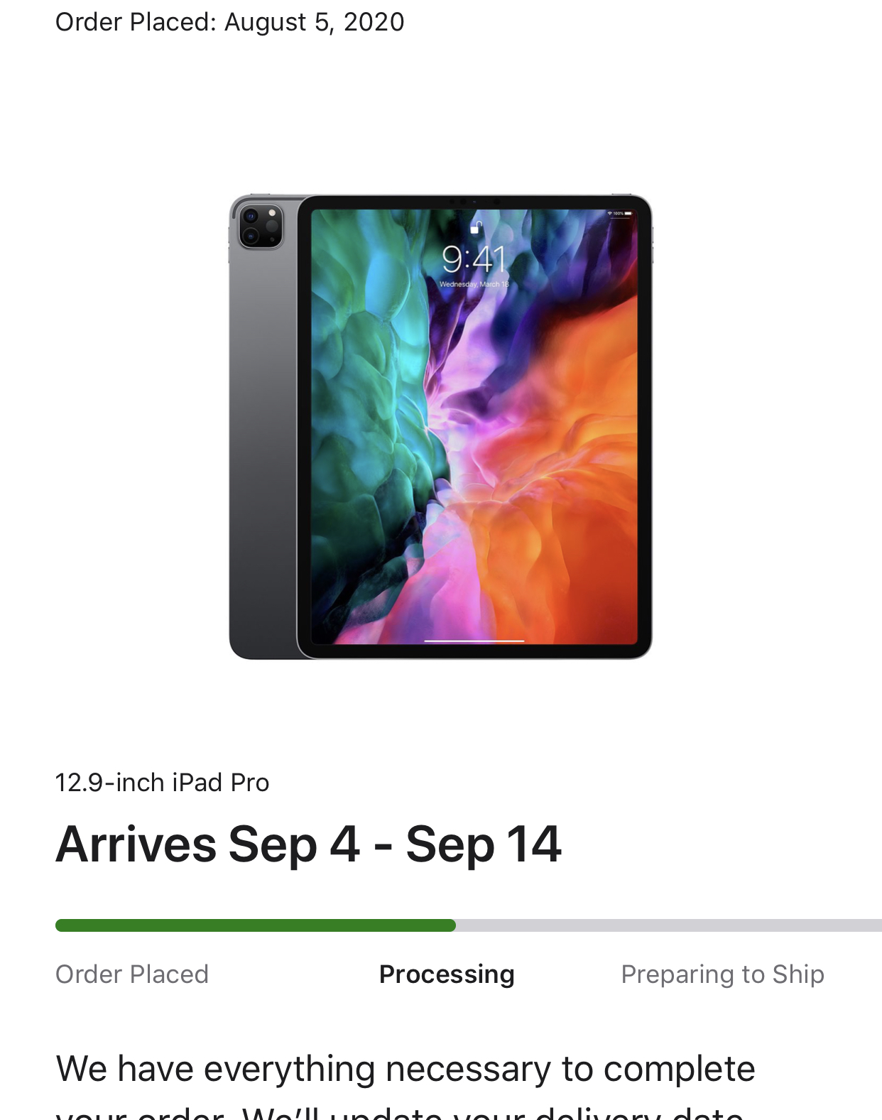 Okay, so my iPad has FINALLY left processing! I had quite the wild time trying to get it to complete the transaction though. Was on the phone with my bank and with apples sales/post-sales team for 2 and a half hours.
