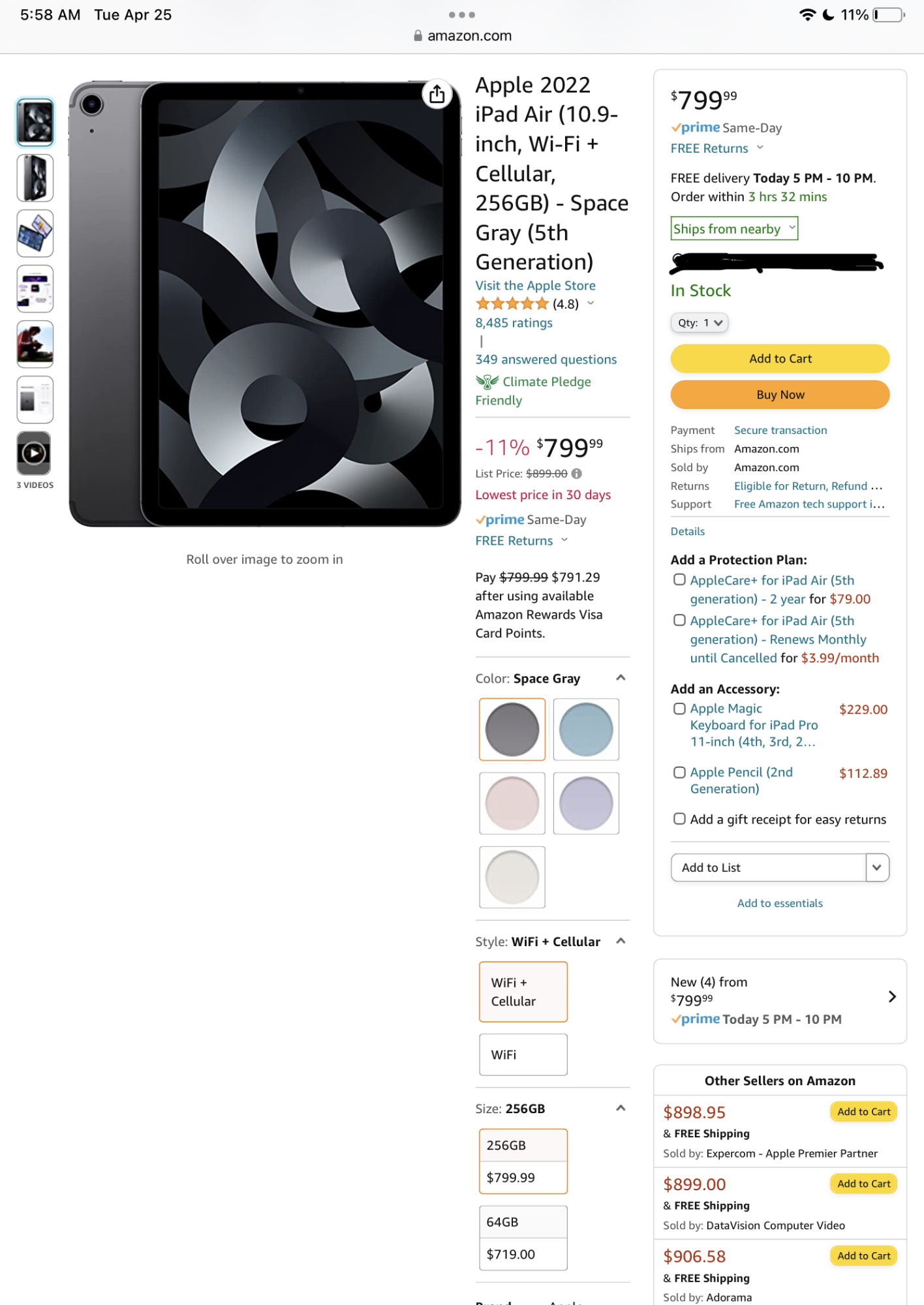 I'm planning get a new iPad for my birthday soon, what iPad do you Recommend it has to be at least 256GB and Cellular (and has laminated screen so probably not 9th Gen or 10th gen) for under 1000 dollars (brand new would be nice as well from any websites) Thanks!