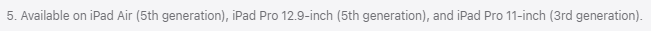 Thanks, this does indicate it is NOT exclusive to M1 iPads. However I wonder if the footnote meant to ALSO say "or later models"...?