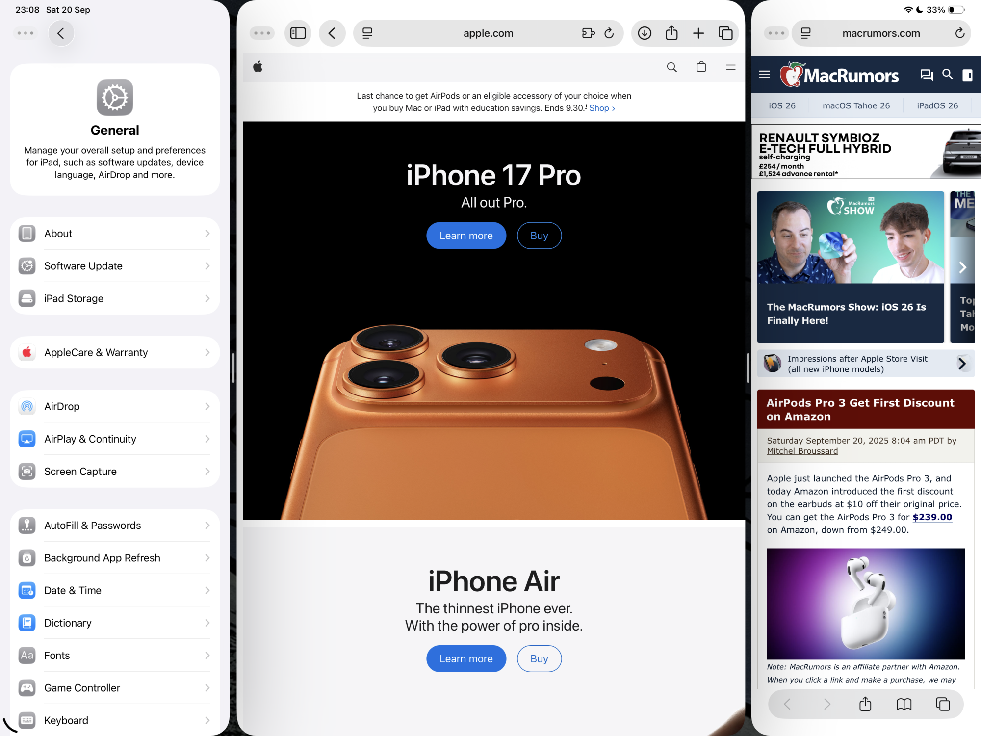 Slide Over is gone, yes, but Split View is still there – a little longer in steps to reach it, but it’s actually more capable depending on your iPad size.
