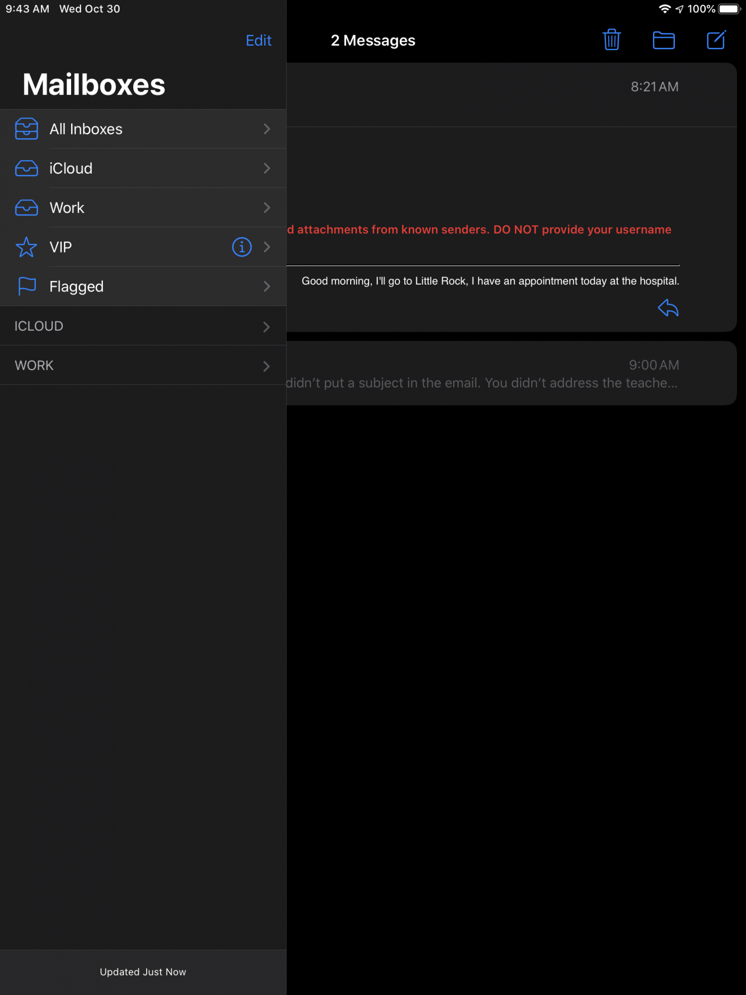 when in mail is there a permanent way to hide the mailbox folders bit left hand side in iPadOS