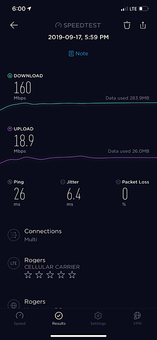 Another speed test riding home this time on a jam packed Skytrain with hundreds of others all using their phones.
