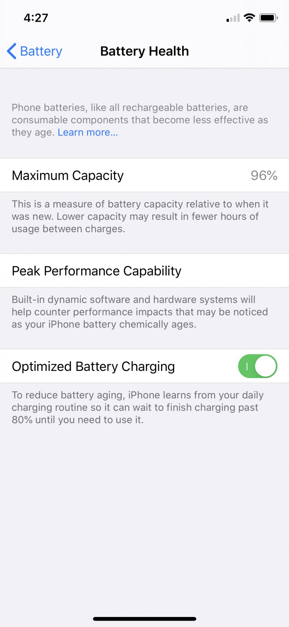 I just bought an iPhone 11 Pro last year September. Then after two months (November 2019) of using, my iPhone 11 Pro's battery health dropped until 95% with normal using (one day one charge). Then I went to Apple Authorized Shop to repair. After a few days, Apple changed a new iPhone 11 Pro with different IMEI number. Then after another two months of using, now my new iPhone 11 Pro's battery health again dropped to 96%. I was wondering what is the problem? I understand that battery is kind of a degrading stuff following by the days of using. Is it the 18W fast charger hurt battery? FYI, I had been using Apple's product for few years. My last iPhone SE does not have this kind of problem. Anyone can suggest? And can anyone tell me how much is yr iPhone 11 Pro battery health? Thank you very much.
