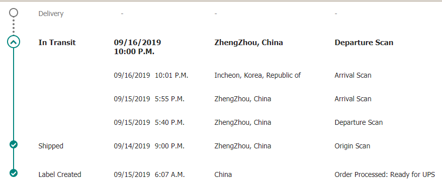 I was once told ups scans aren’t always accurate. So what happened here (my shipping reads the same as yours) is it probably missed the departure scan from zhenzou and they entered it in in incheon.Well that’s interesting....