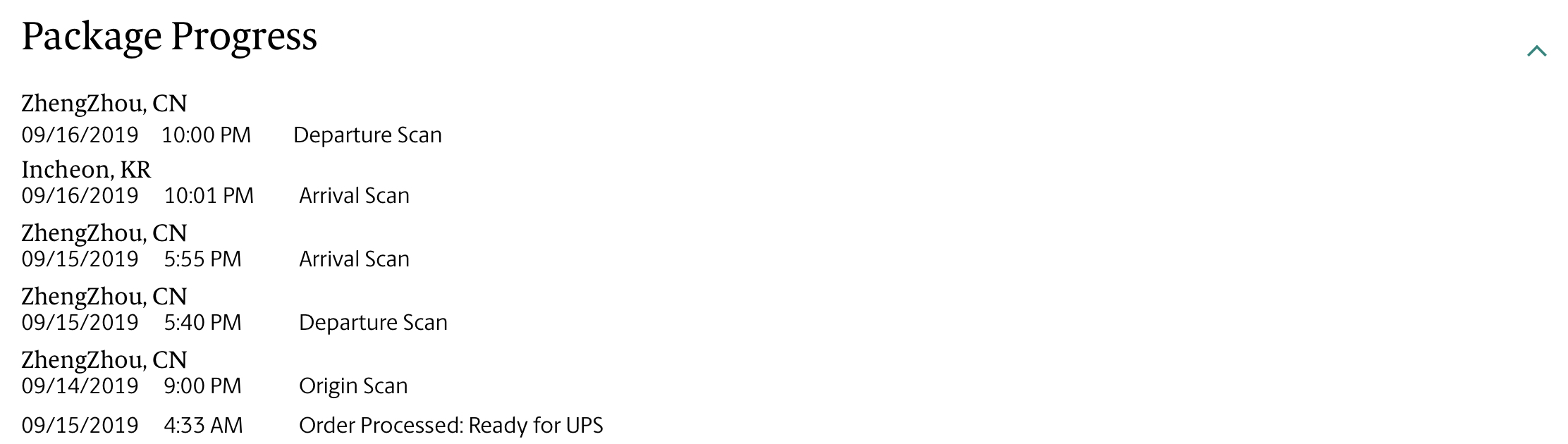Is anyone’s tracking out of order like mine? Like how it arrives in Korea at 10:01 but then departed ZhengZhou at 10:00..