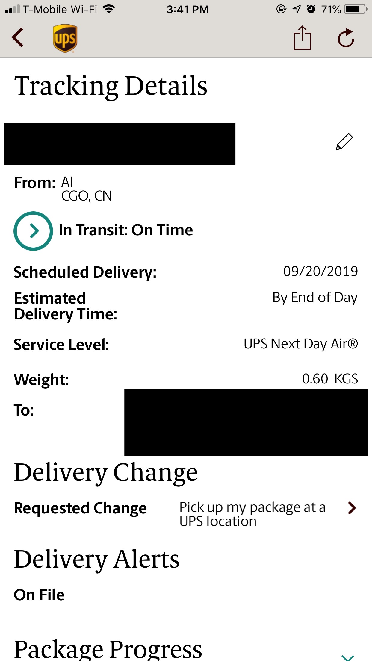 Just using the tracking number mine says the same. But under "what's next" it gives the statement of UPS not having possession. I think it is because my phone is stuck in Origin scan.No. My delivery date is 9/20 by end of dayView attachment 859411 .