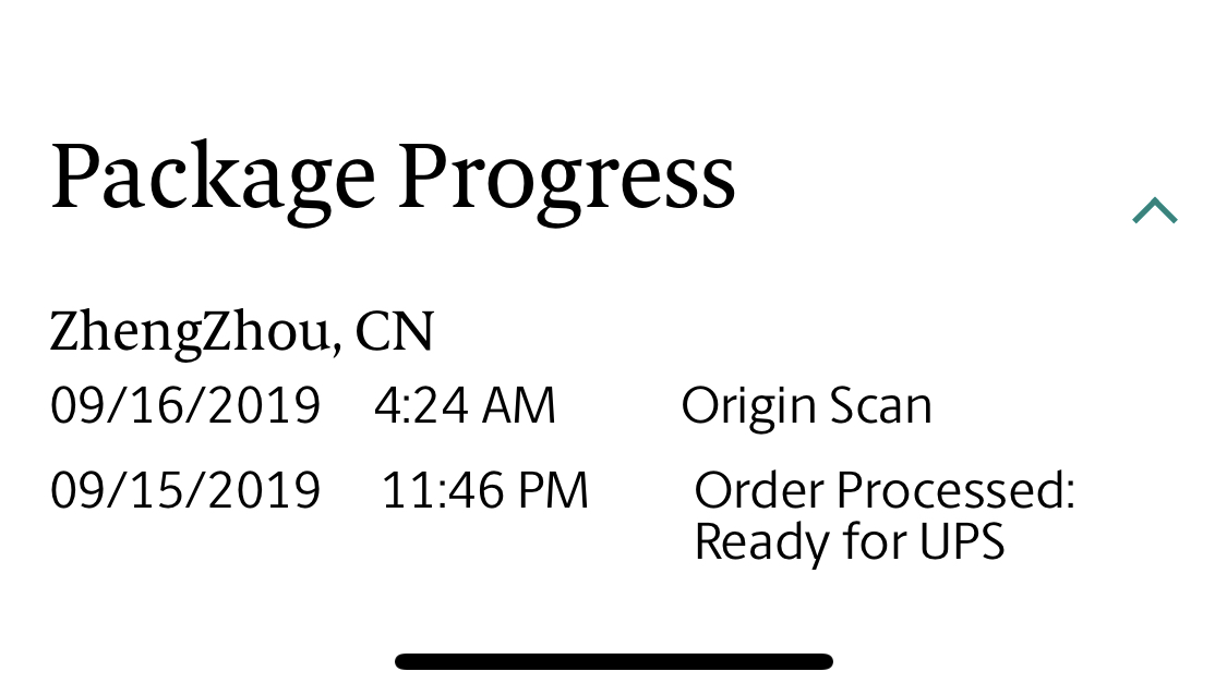 Shipped 09/16/2019 4:58 A.M. ZhengZhou, China