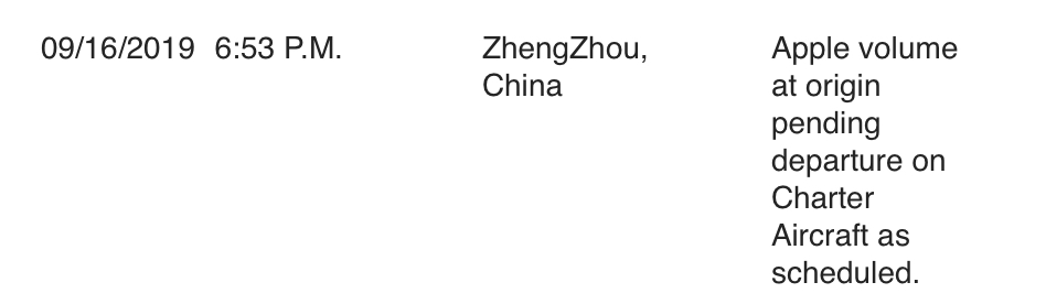 Wish we had the one about “Apple Volume at origin pending departure on charter aircraft” in real time.