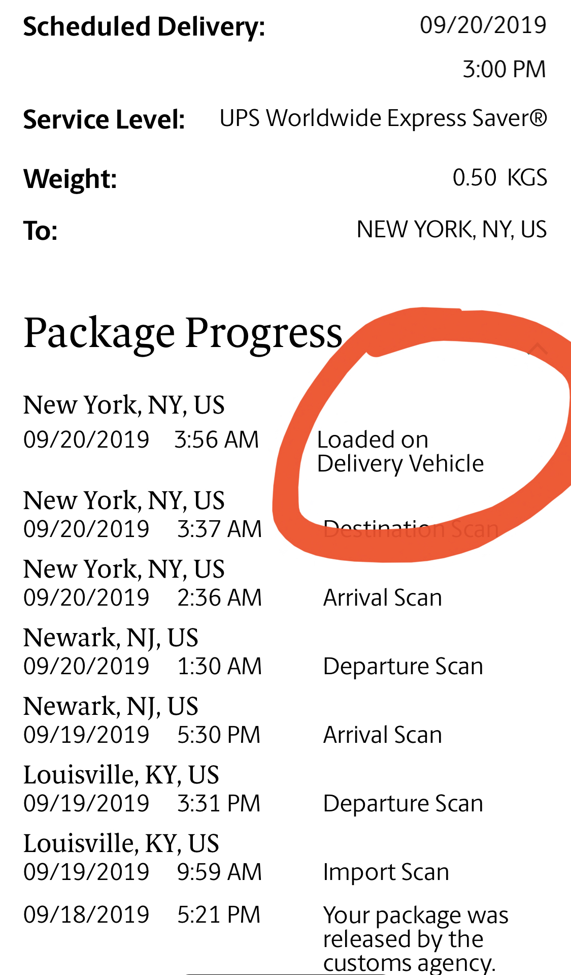 Is that a new scan with UPS now? Normally it’ll just say out for delivery