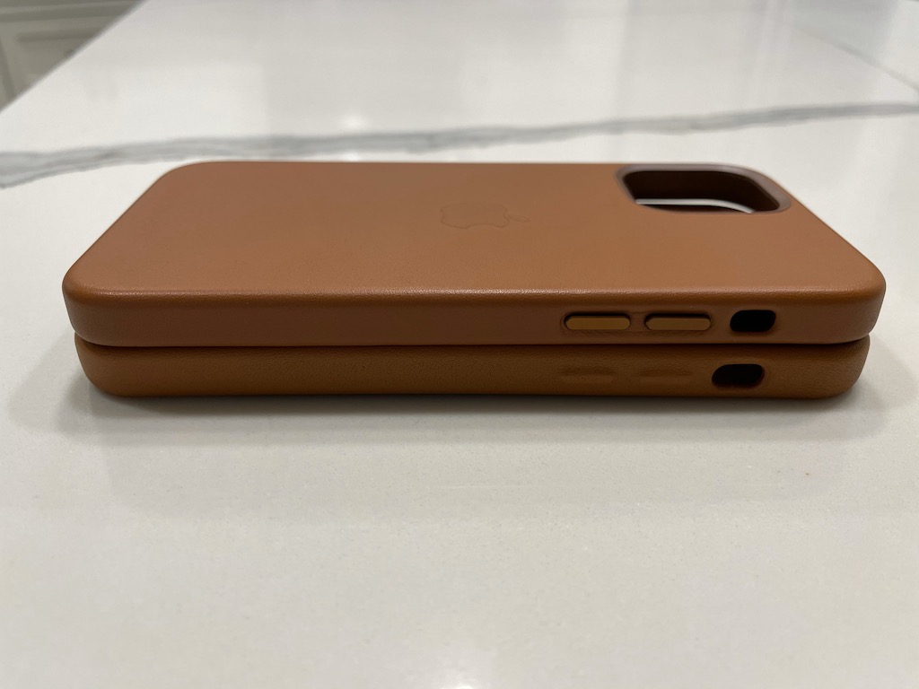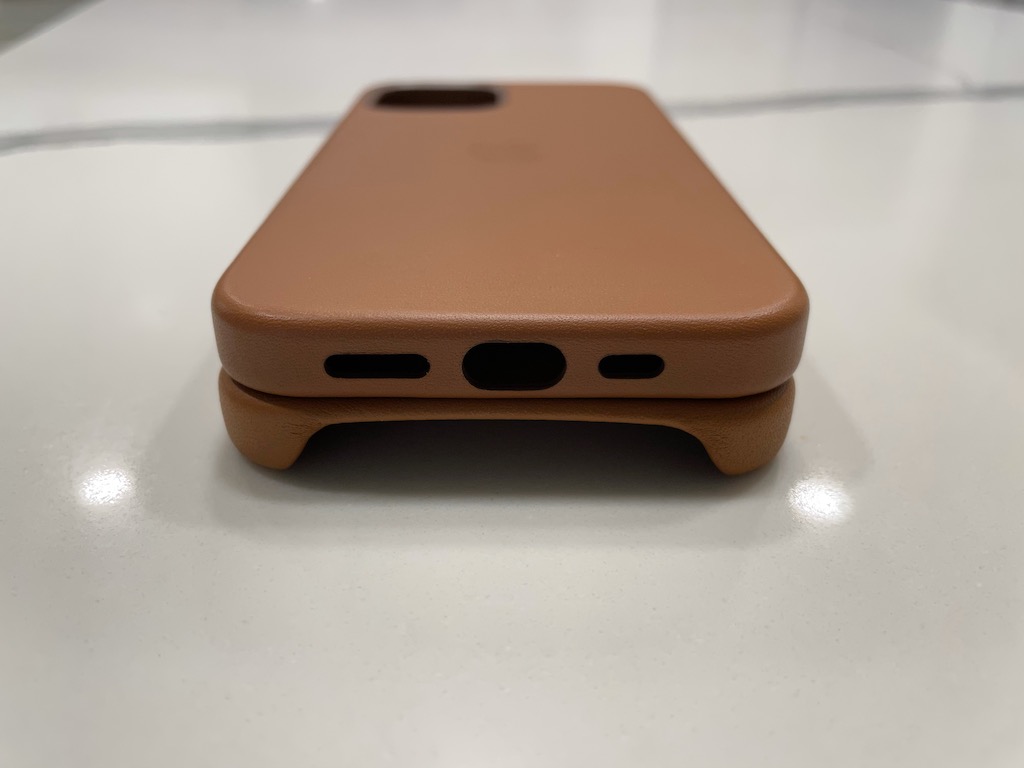 I do prefer the open bottom leather cases like in previous years but I refuse to use a leather case that does not have responsive buttons like the Apple ones do.Here's an assortment of comparison shots between the Apple Leather Case and the Mujjo leather case, for my iPhone 12 Pro.