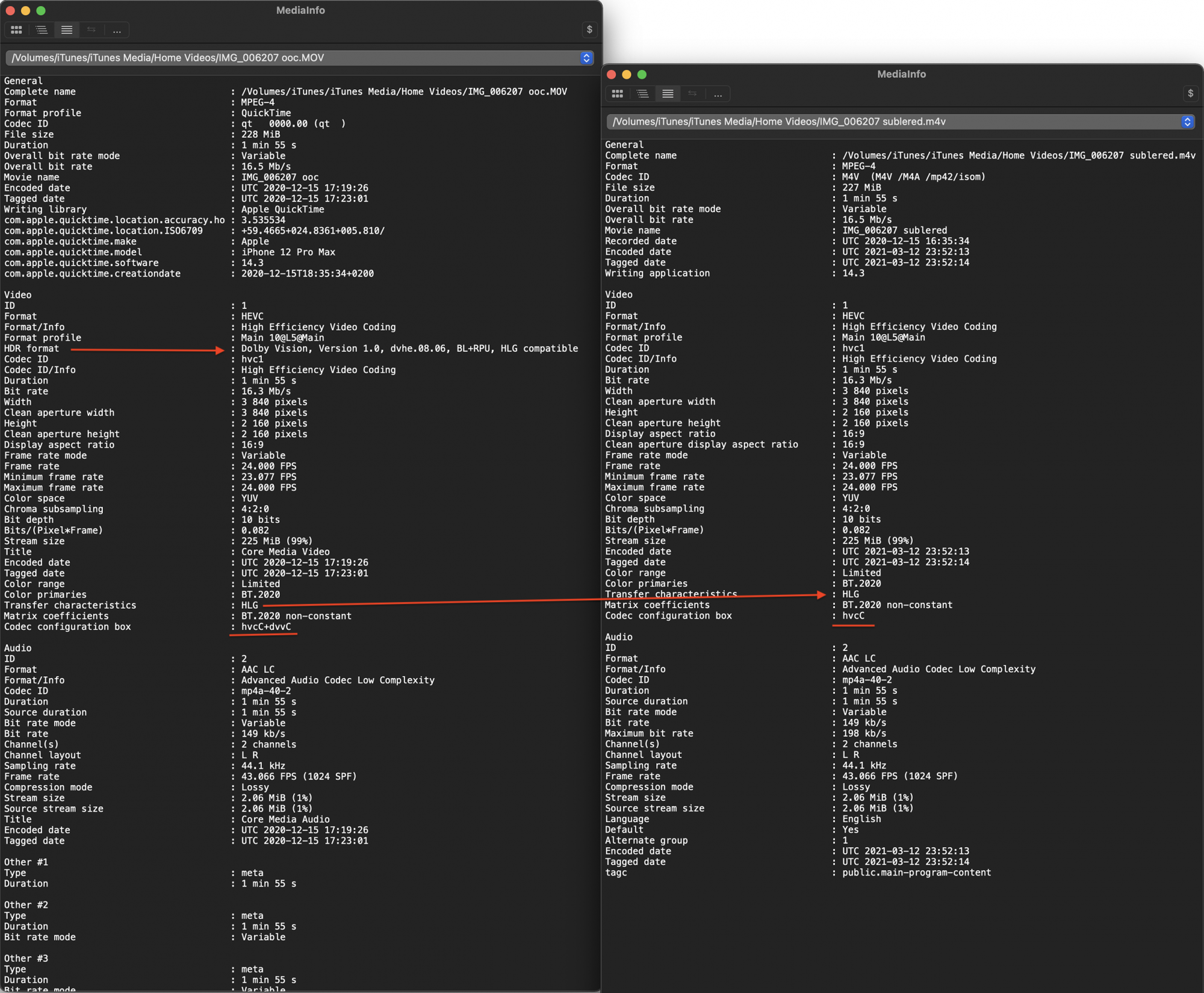 But when I put the video on my notebook with my 100's of iPhone X videos and use iTunes to AirPlay it to my TV, different story, the 1080p 30 HDR video shot on my iPhone 12 looks terrible, all the bright areas are blown out, looks awful.