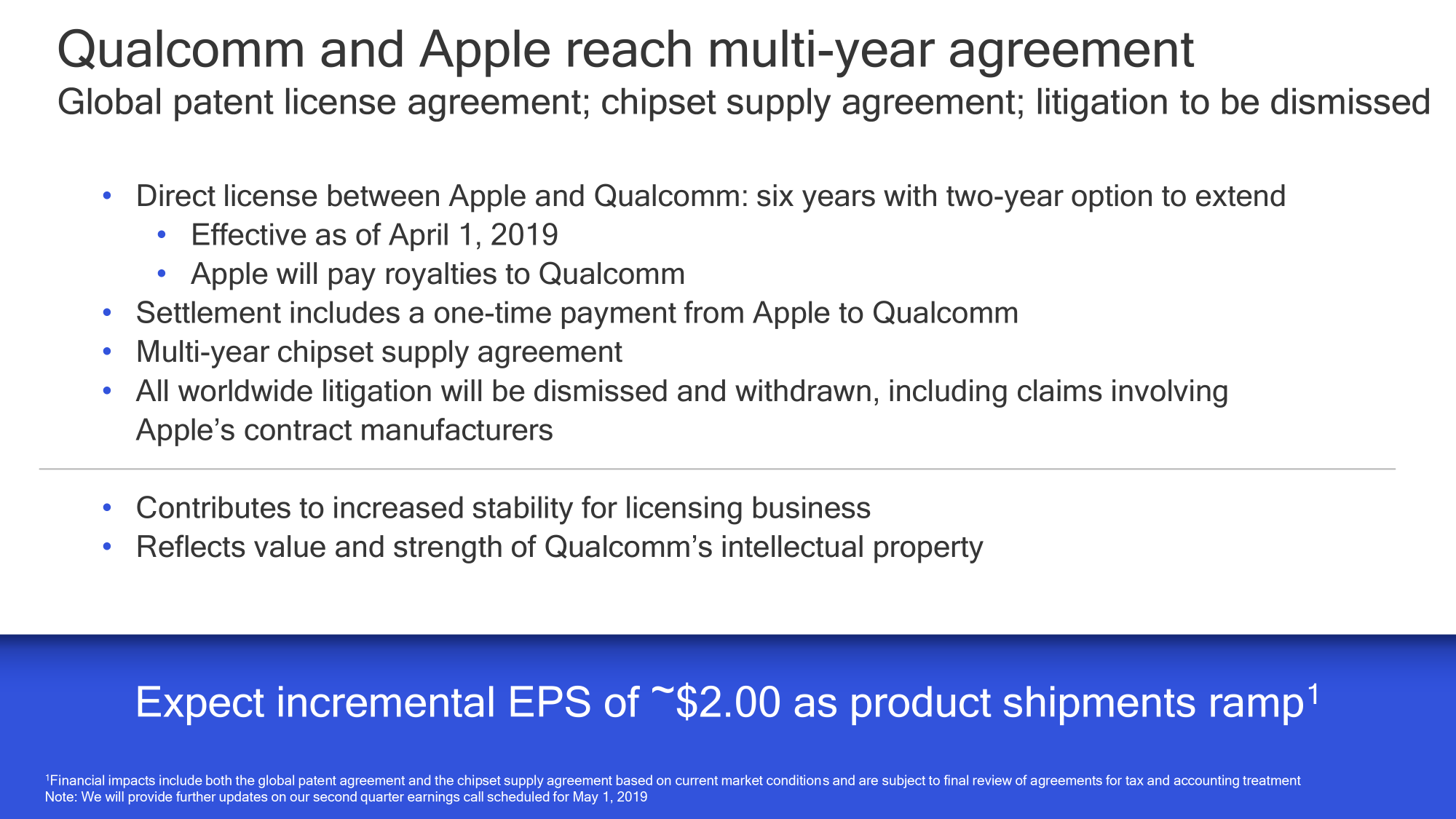 Nah, there's a reason why Apple signed a 6 year supply agreement with Qualcomm, with the option to extend.