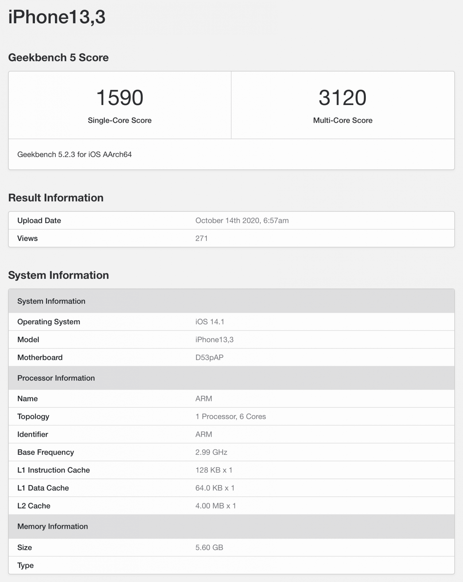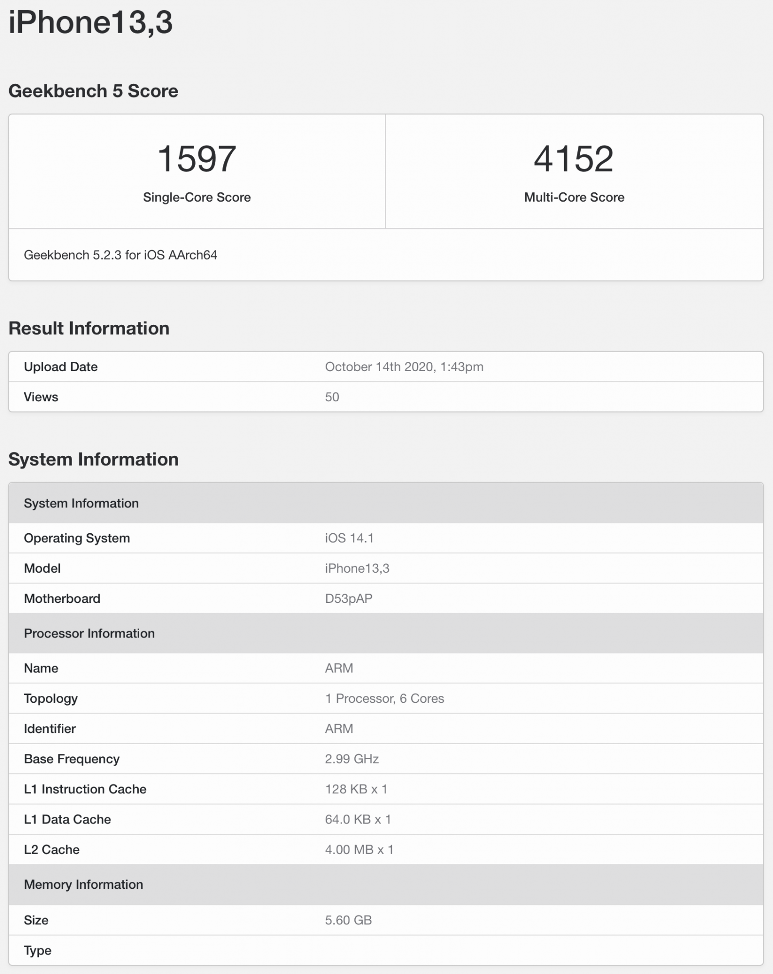 iPhone13,3 - Geekbench