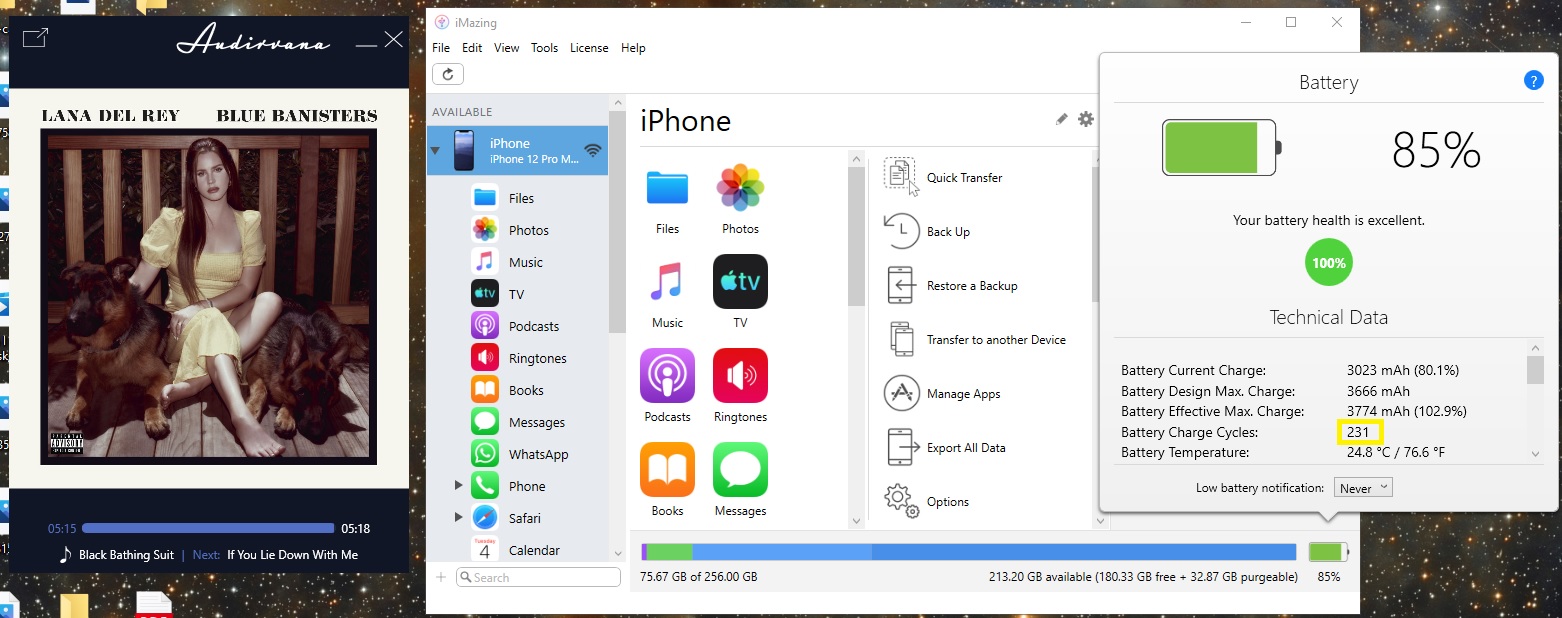 I'm at 131 charge cycles. In fairness, I have other mobile phones that carry some of the load. So, I only charge my phone every 2-3 days typically.What's your current charge cycles? My launch day is at 231 charge cycles with 100% health still