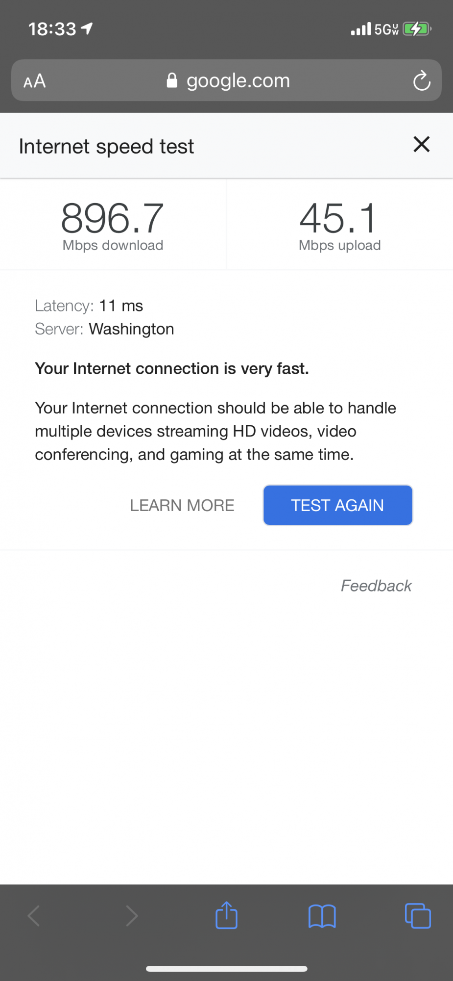 I called Verizon earlier today and found out there was an issue with my activation - somehow the 5GUW wasn’t active for my line. They fixed it and I found that I now have this from my porchSitting down under the 5G UW tower from Verizon around the Baltimore area, those are not the speeds and specs you were looking for...