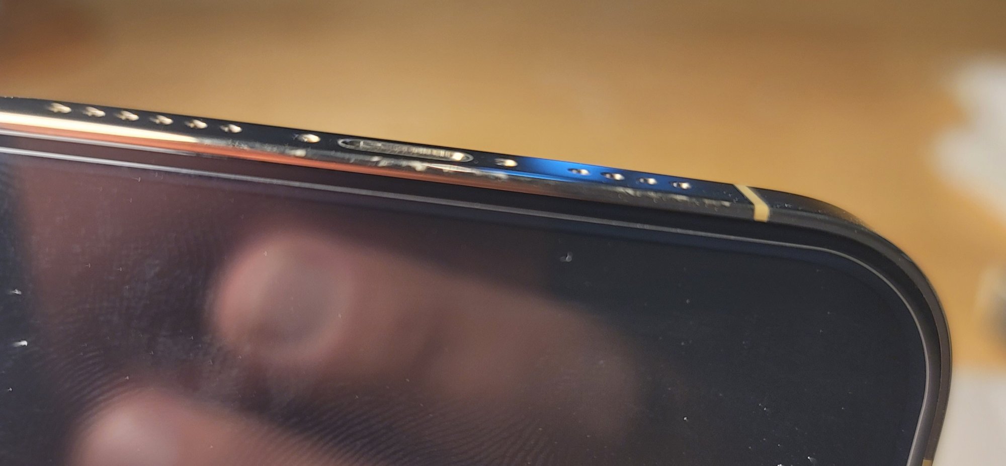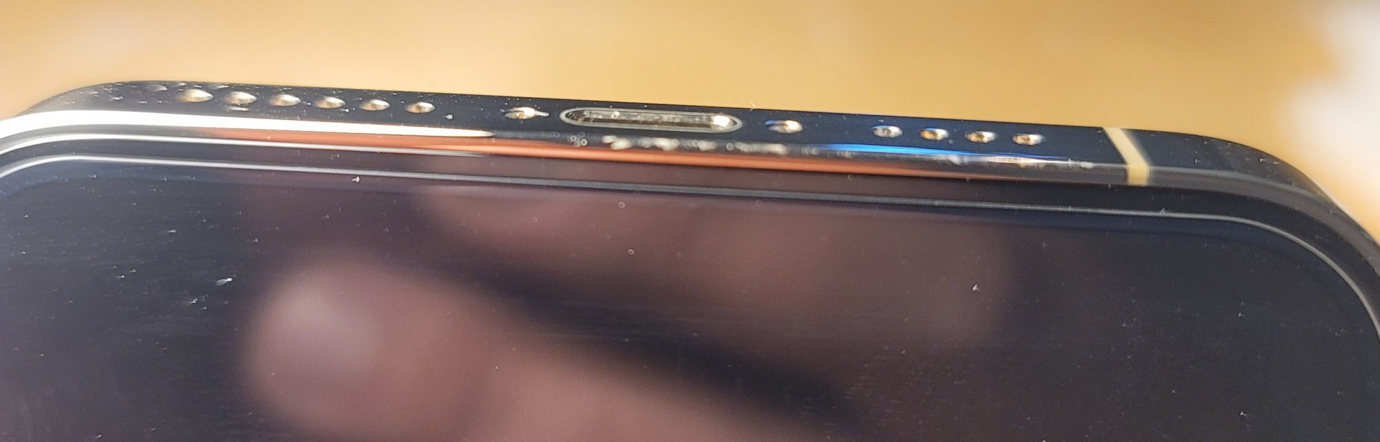 Damn, That's got to suck. Things like this would definitely bug me and would be an immediate return and definitely not a keeper in my books., despite that the screen is perfect. But then of course I understand that even if you do return it and get a new one, the new one could potentially have other issues as well.Just opened my iphone 12 pro max gold and the frame is scratched on the area above the charger port out of the box. It's an area that probably got scratched during manufacturing as it's the thin frame area across the band . My finger nails do catch it unfortunately.