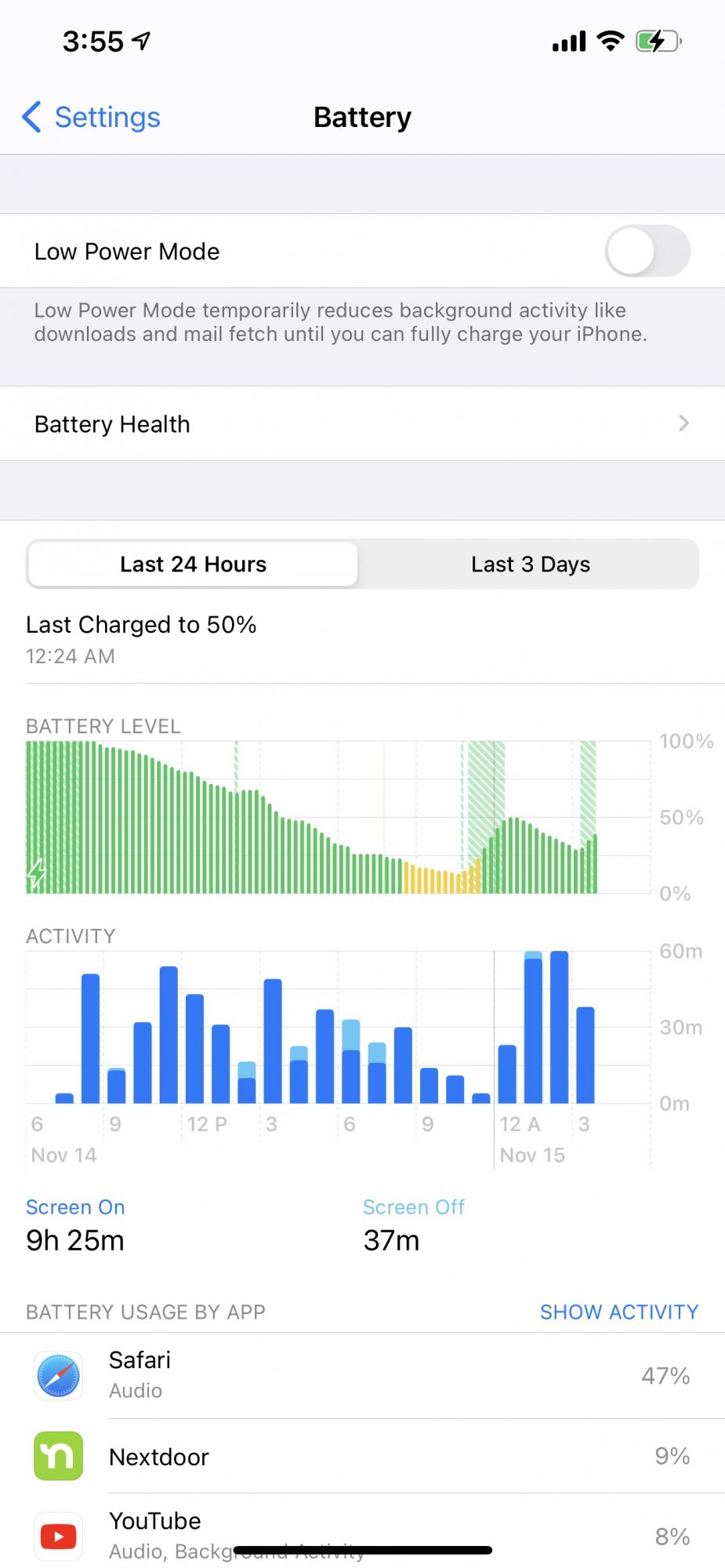 Third day since I’ve had the phone, battery life is looking real good, improving every day, today has been a mix of 4G and WiFi, during the day 4G screen brightness cranked up to high, no dark mode, now at night on dark mode and WiFi.