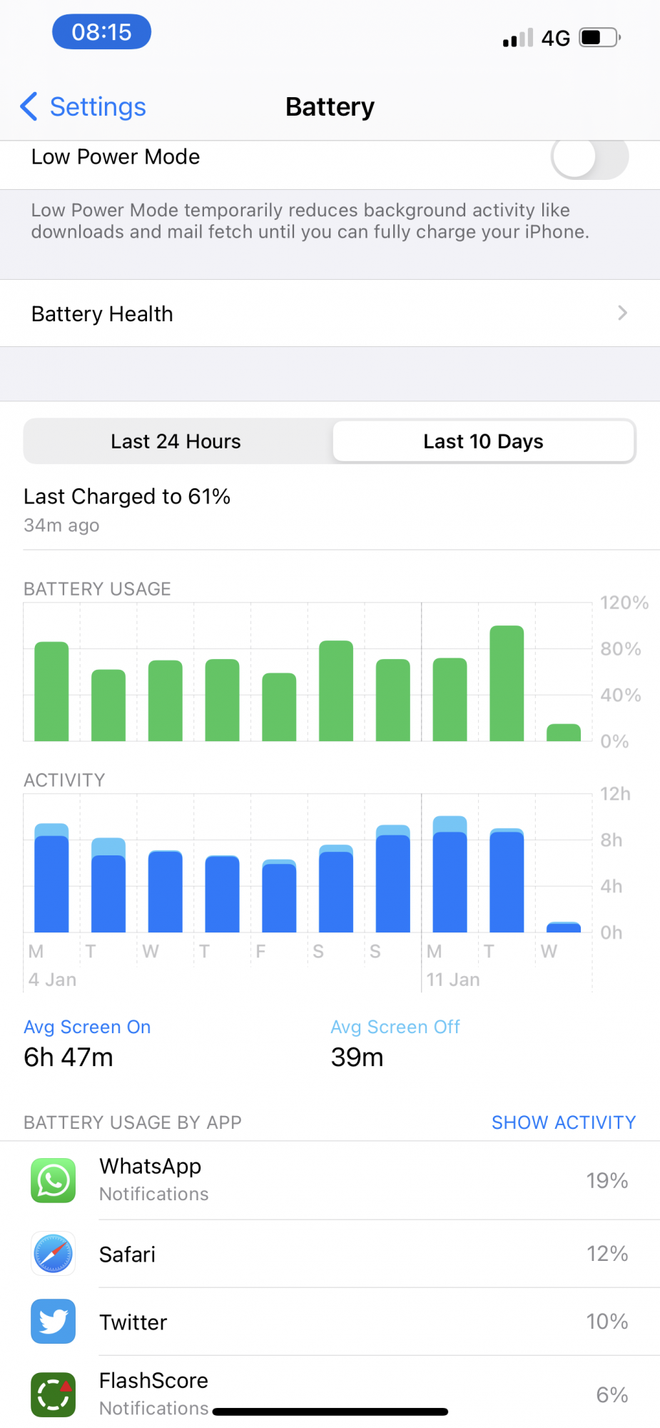 A lot of mixed usage with Cellular and Wi-Fi, always keep autobrightness on. Literally never touch the brightness. I have airdrop Off, hand-off off (I have literally never used the feature so no need to keep it off), I have every privacy setting under system services on, except significant locations (I got annoyed at the phone giving me directions on how to get home all the time) and Background app refresh, just select apps on. I saw an increase in battery life once I turned off automatically airplay to tv’s, as soon as a i turned that off, my stand by battery life and normal usage shot right up. I tried it on my iPad Pro first, I used to have to charge it every other day due to it losing so much battery with it on, as soon as I turned it off, I charge my iPad every 3-5 days and I use it daily.