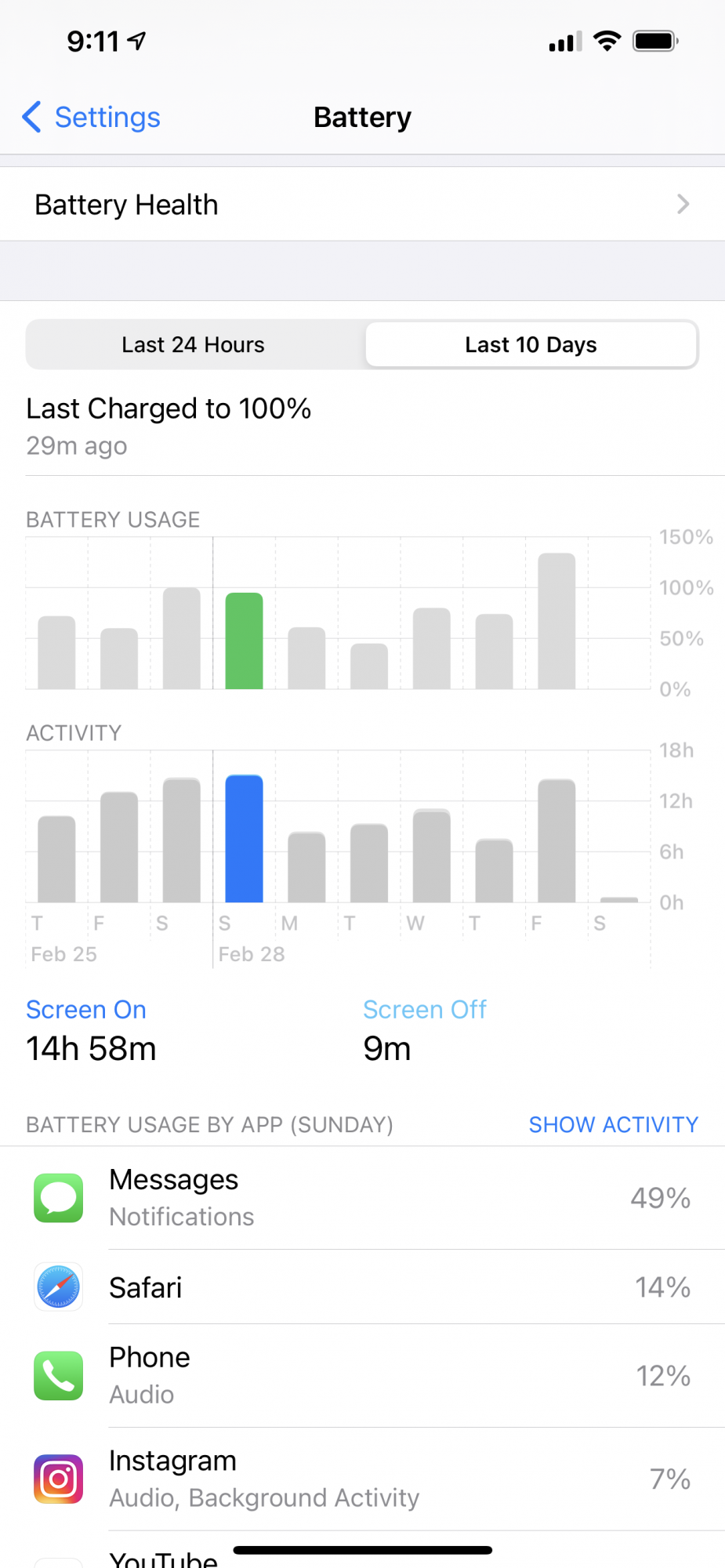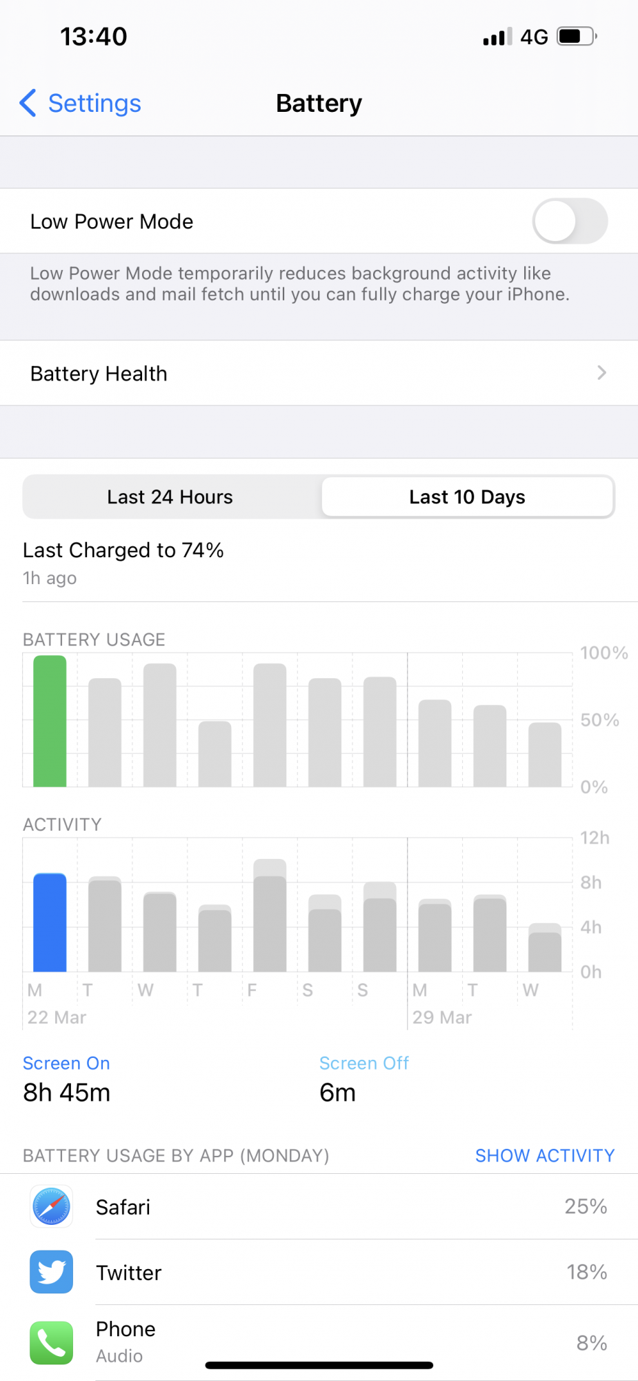 Iphone 12 pro max :9 hours youtube ,screen on - 9 hours , 50% brightnes ..batery left 20% .Is bad or good? I'm not satisfied.