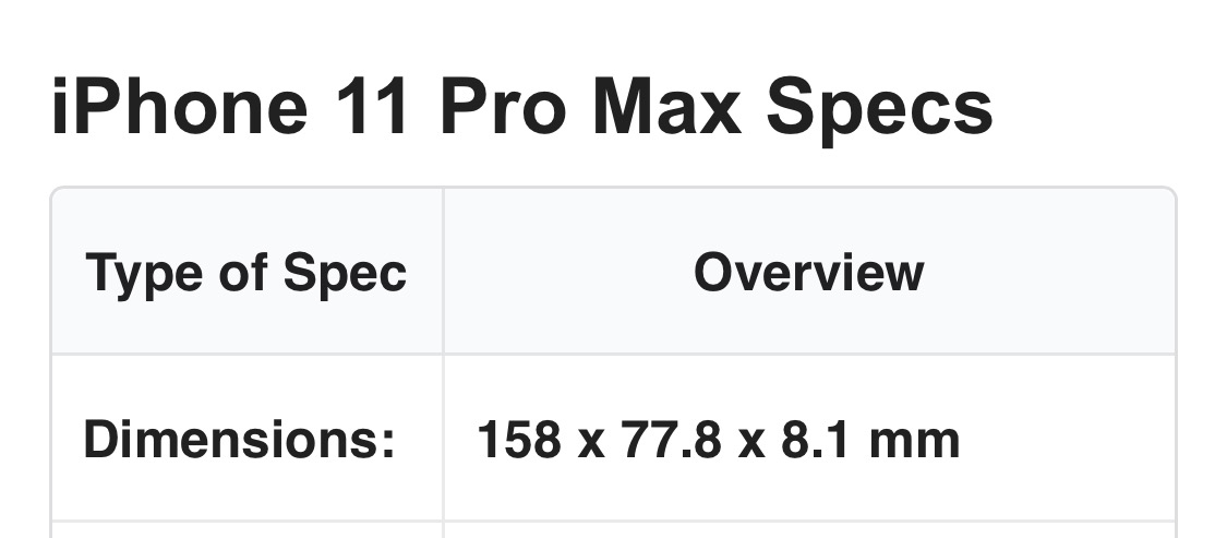 - iPhone 12 Pro Max: we keep the height (2.80 in) and calculate the width = 2.80 in * 16 / 9 = 4.98 in
