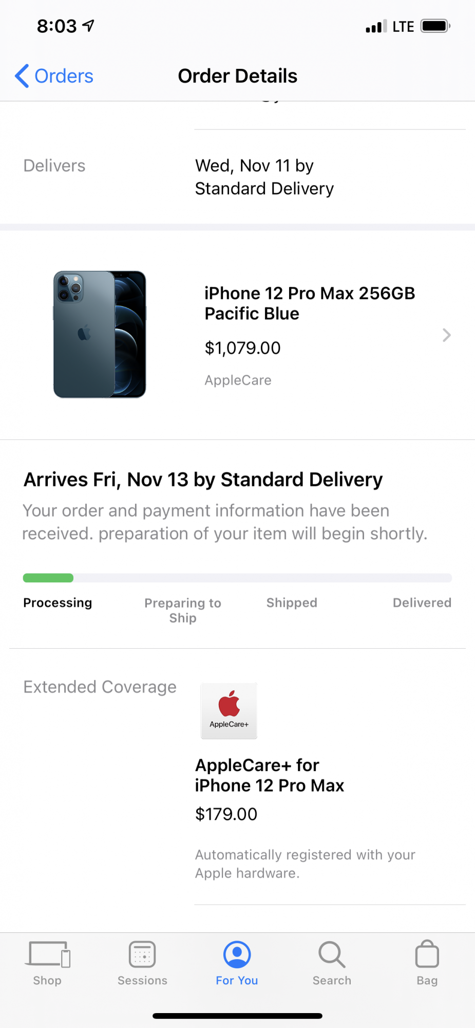 Does this say delivery on Wednesday the 11th or am I reading something wrong?View attachment 1411476Crazy ride with Apple this morning, but I was able to get my Pacific Blue 12 Pro Max for launch day! YES!!