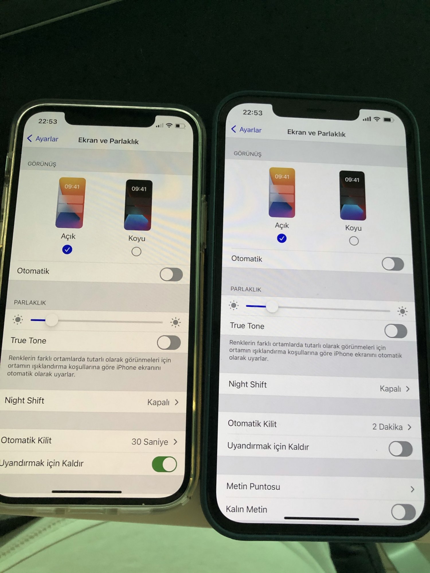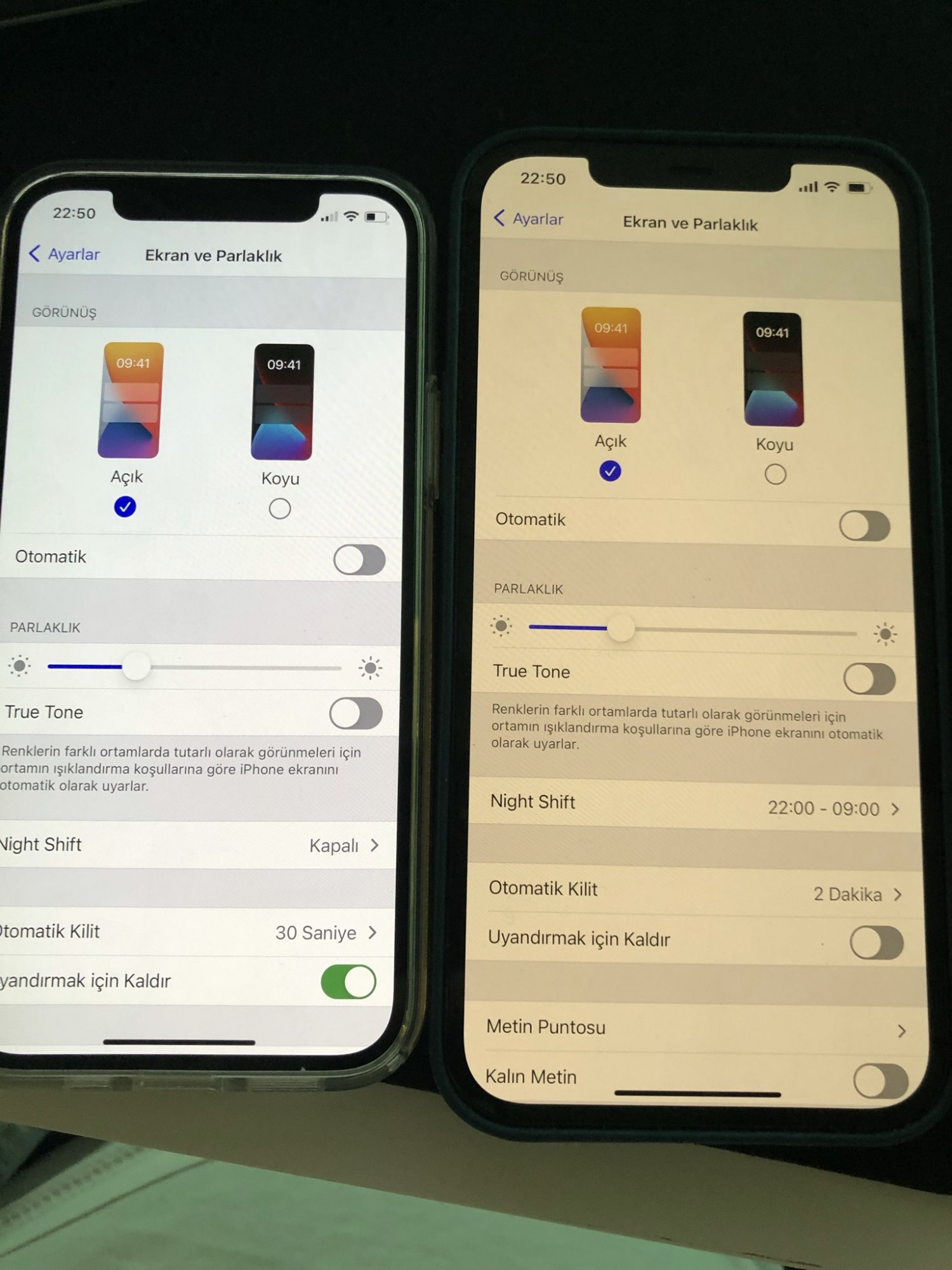 Compared my 12 PM with an iPhone 8+ and the blacks look better in every way but the LEDs still do not fully turn off until you raise the brightness to 90% or more.