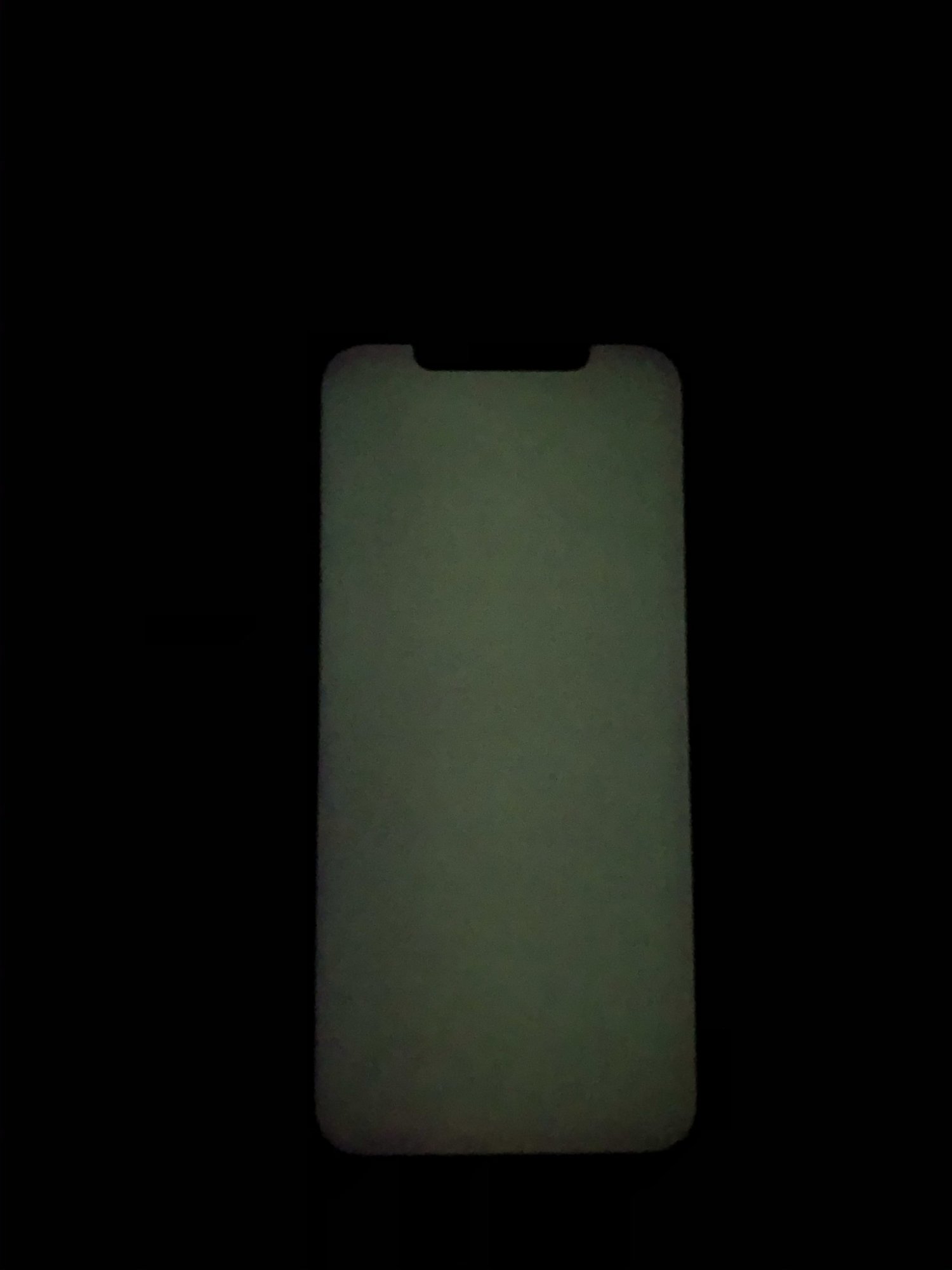 Put your phone on low brightness, make sure you’re in a really dark room, swipe through some photos and look at the black bars on the side, you should see a slight green tint for a few seconds, then it goes away.