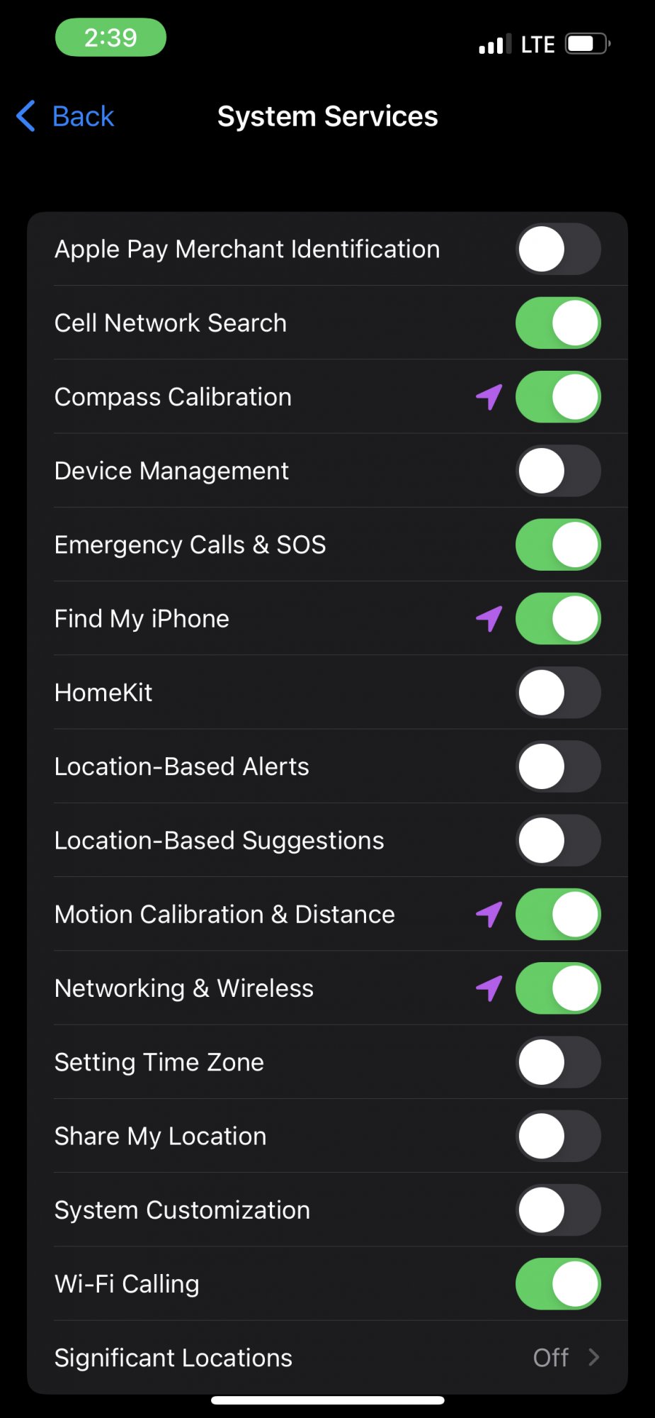 * disable location-based settings in privacy settings menu below