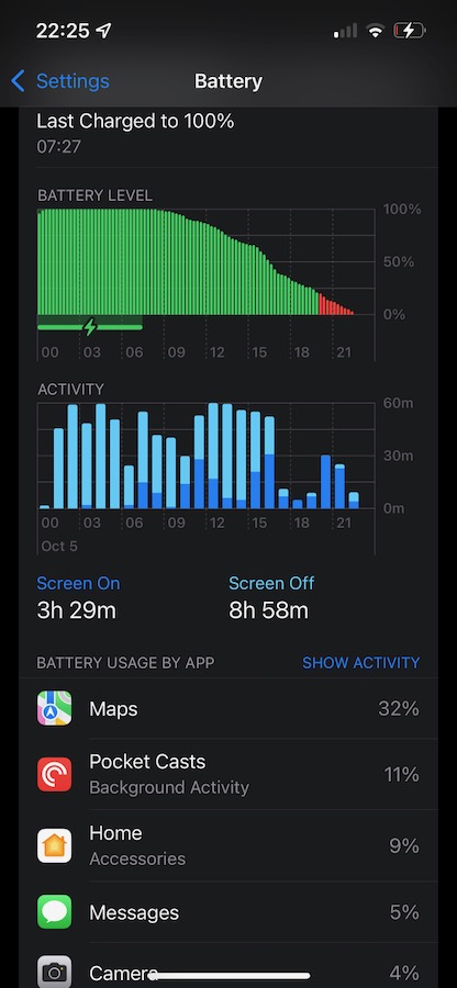 Thanks for the suggestions. Extra odd: I don’t recall using stocks last night at that time anyway. Today’s been best day yet for battery life though I’m not sure if my interventions or things balancing out.You’re right, it doesn’t make sense. You’ve used the Stocks app for a minute more than either Maps/Waze but I would still expect the latter apps to drain abit more for obvious reasons as they tend to “pull” data much more often, thus significant battery juice will be used. But then again we are dealing with a minute or two in terms of usage. So it’s hard to tell if Stocks is a problem. I mean say if you prolonged the usage for all three apps, eventually Maps and Waze would use more battery than Stocks.