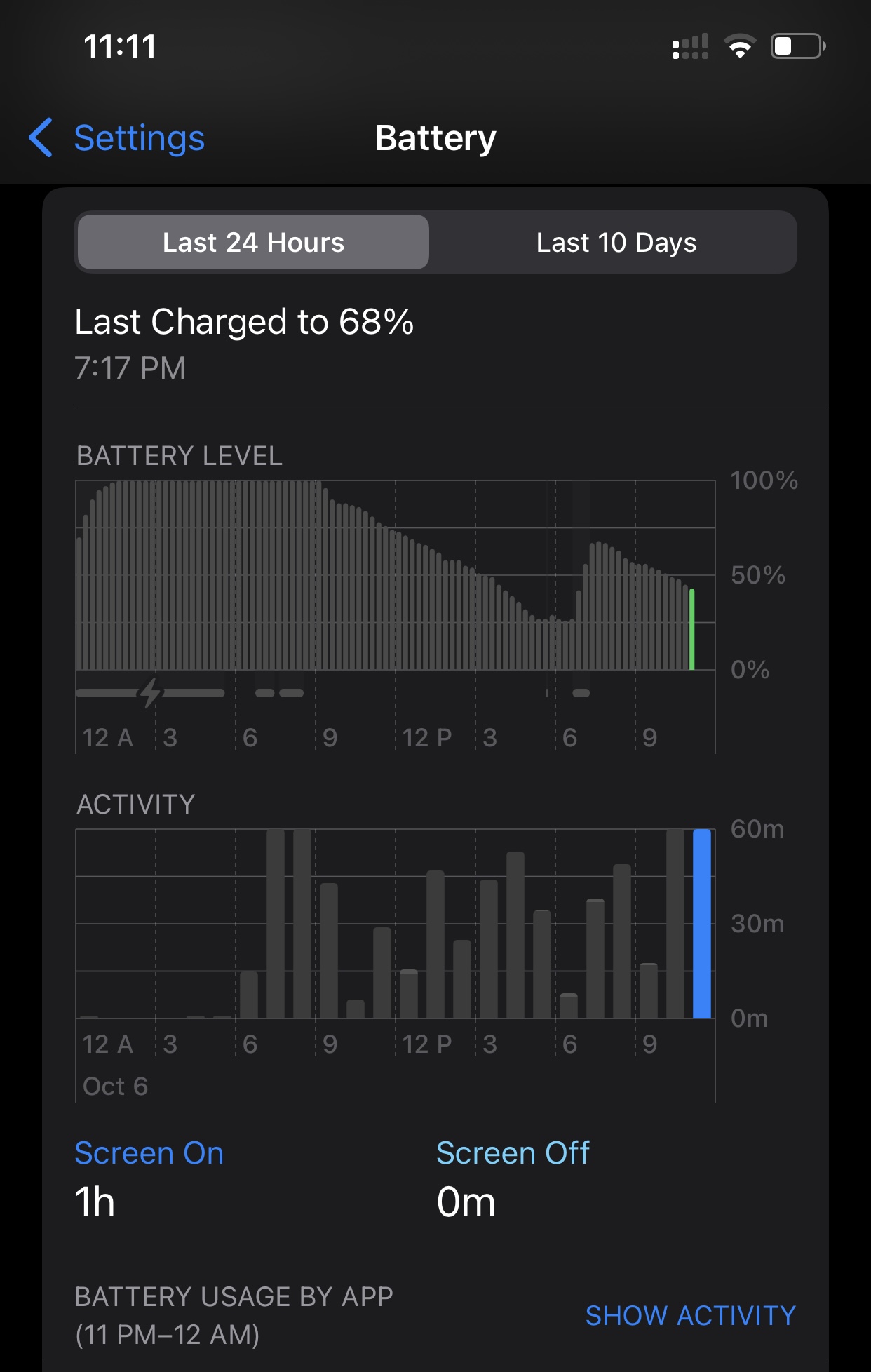 Notice how my iPhones clock in the upper left is 11:11 then notice I have 1 hour of screen on time between 11pm-12am (same hour). Hour screen on time in 11 minutes....