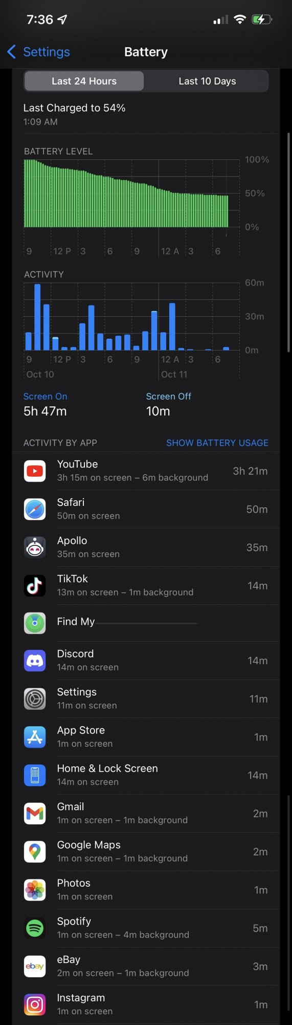 * Light usage today. No way I did actual 5hr 47 min screen on time though. iOS always inflates screen on time I feel.