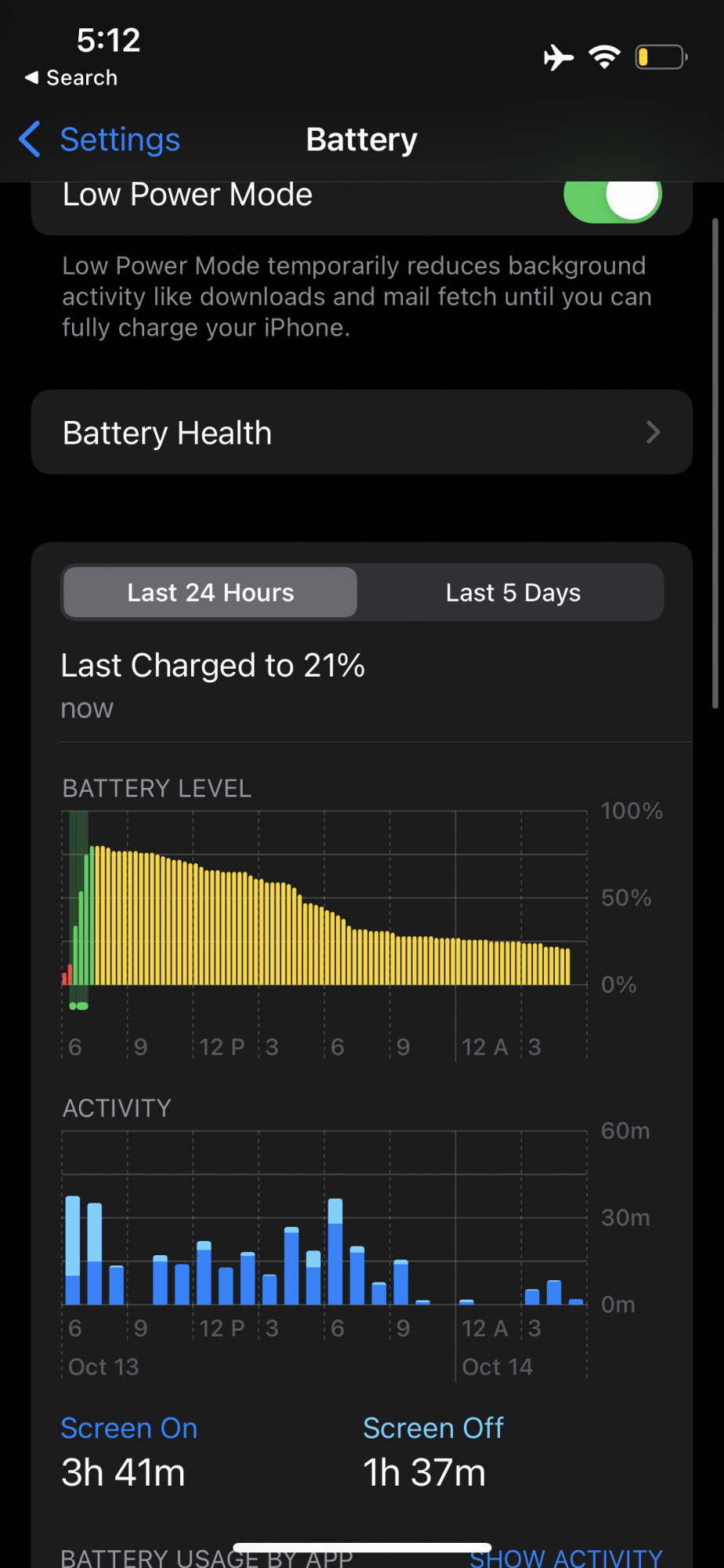 Someone else pointed this out to me, if you run an app for a few seconds and then kill it off, the time reported will be 1 minute. If you start 10 apps that same way, it will be reported as 10 minutes. So iOS 15 is definitely over reporting app time used. It is always over reporting app time used to the next minute. I have verified that myself. We already know that iOS 15 is over reporting battery percentage. So I believe what we are seeing in the battery usage charts is over reporting app time used and battery percentage used. Which confirms my suspicion that the battery usage charts are not useful because they are over reported.