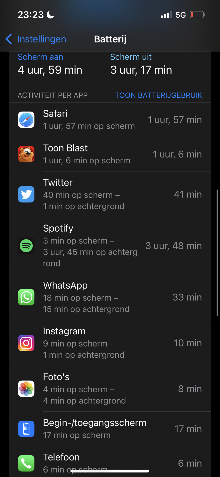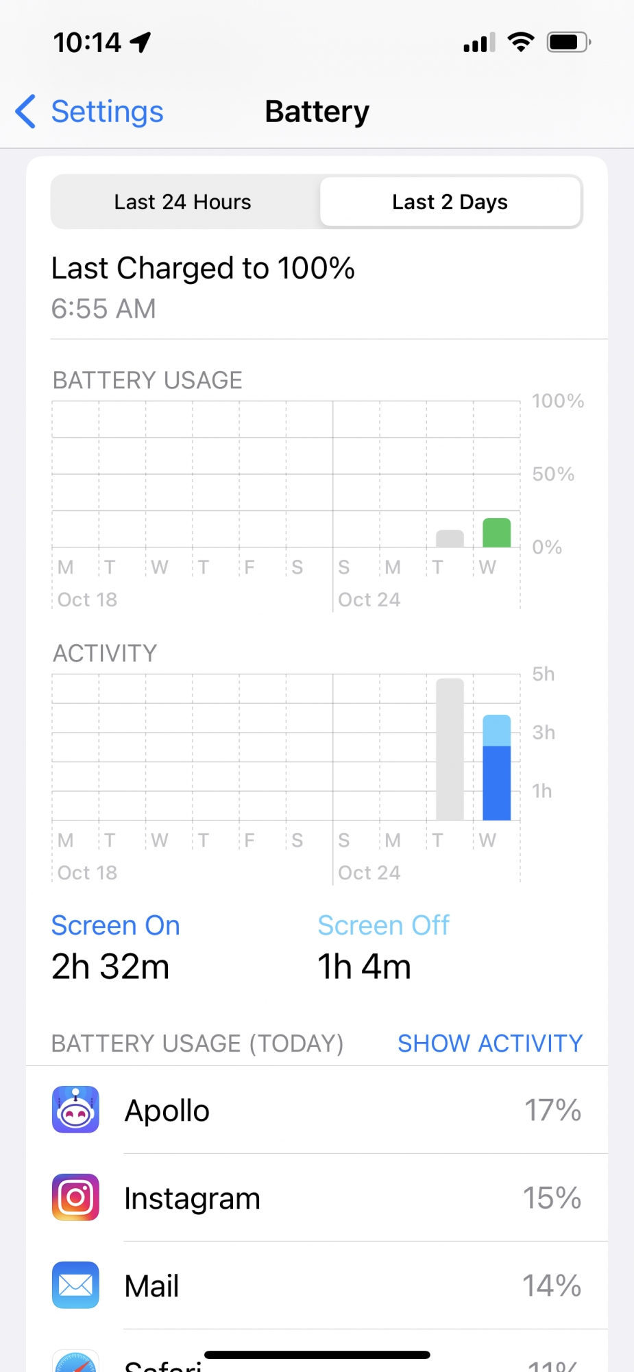 Estimate to 100% battery usage, 19 hrs 34 mins
