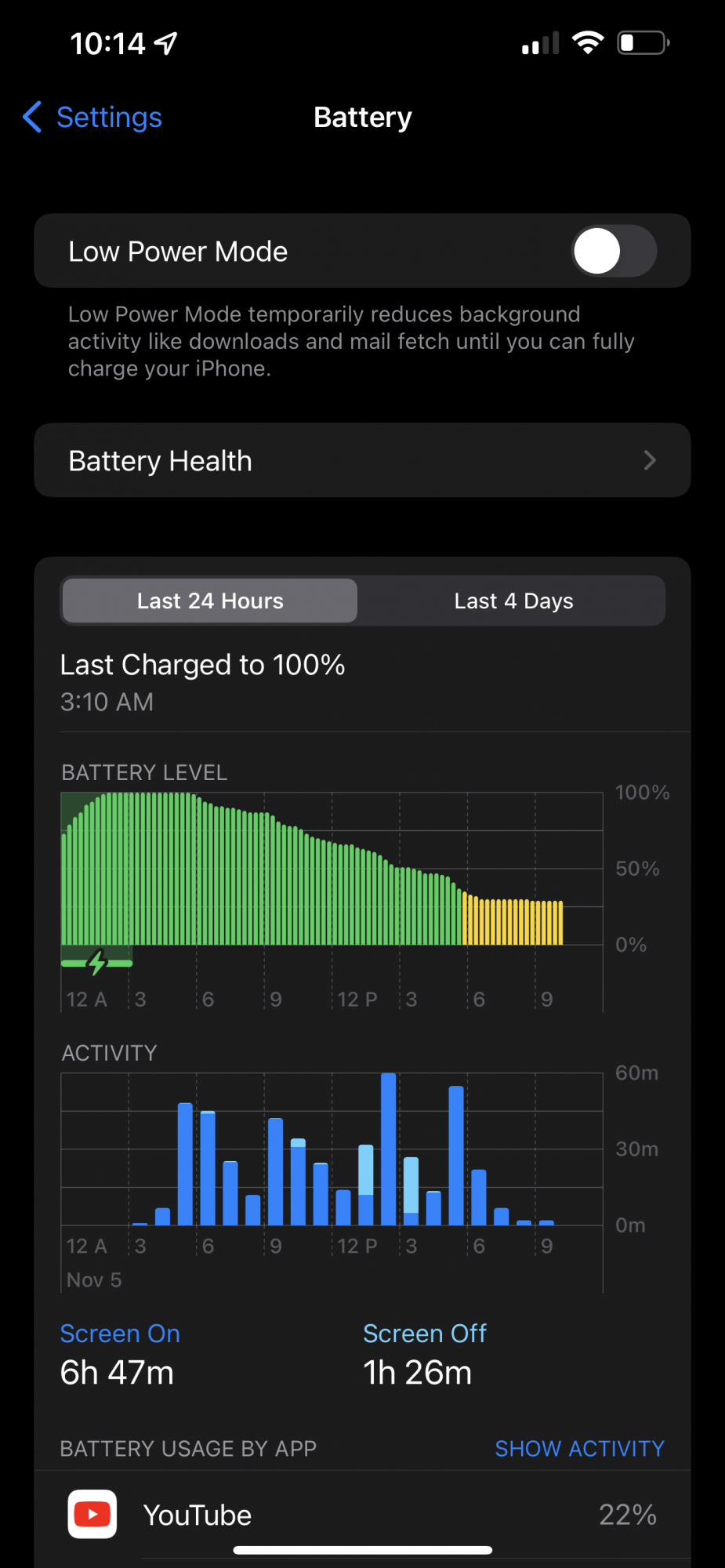 Thank you 😊It looks like 100% battery usage, about 11:30. That’s good battery life.