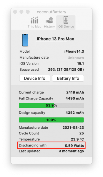 - low-power mode turned OFF (so regular battery/power mode)