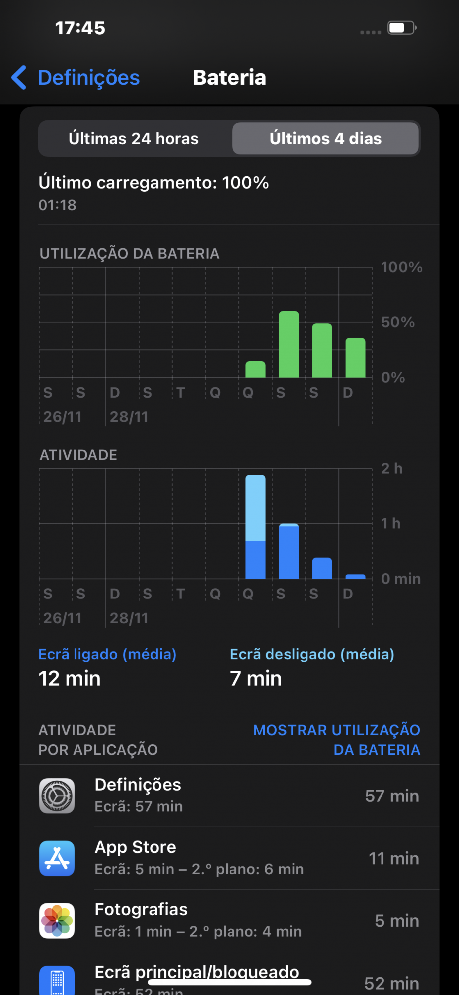 Equipamento sem mau funcionamento de hardware. Restaurado e atualizado o software. Após o restauro, o equipamento foi submetido a vários testes funcionais intensivos, durante os quais a anomalia reportada não se manifestou. A bateria está funcionando normalmente. O equipamento atende às especificações da Apple para desempenho, usabilidade e funcionalidade. O equipamento foi devolvido sem intervenção. Diagnóstico concluído em 02/12/2021.
