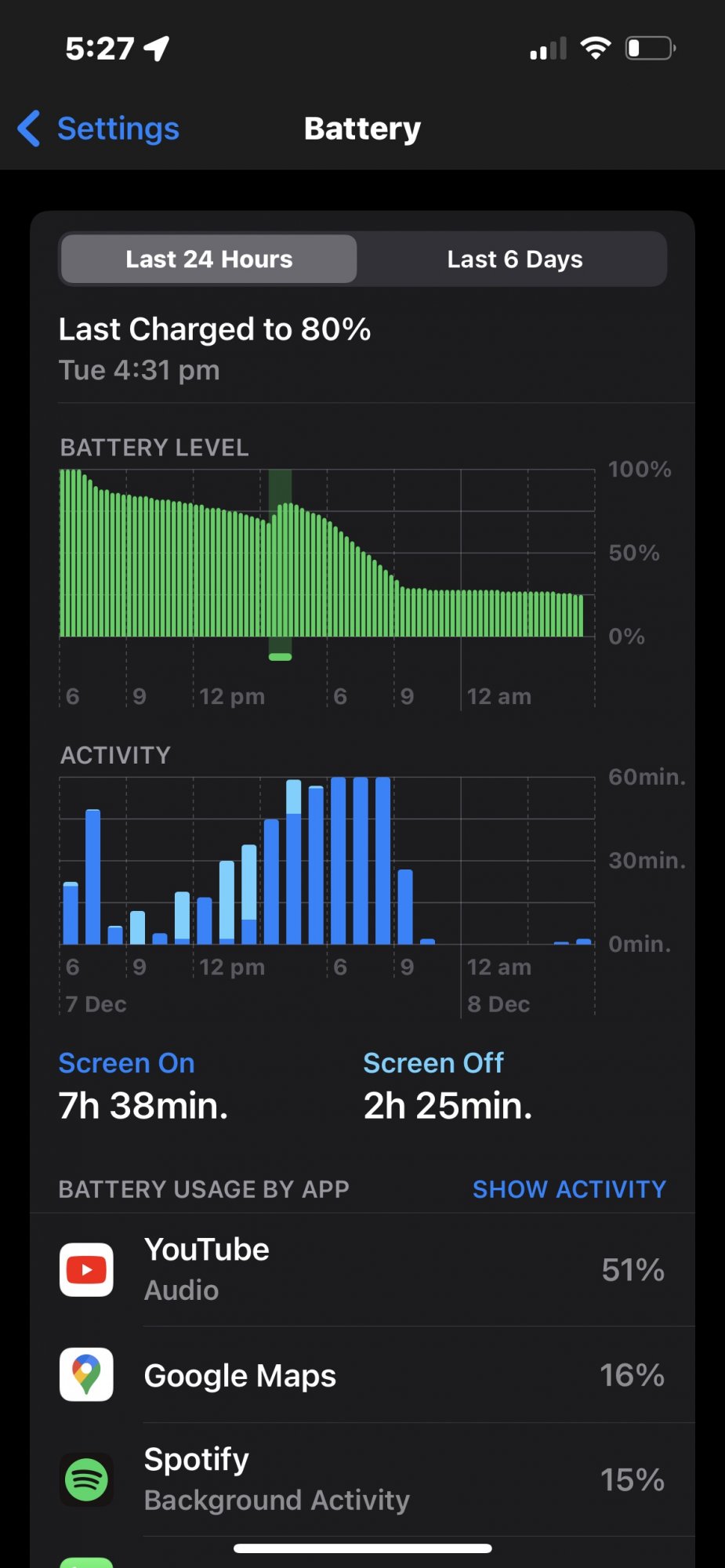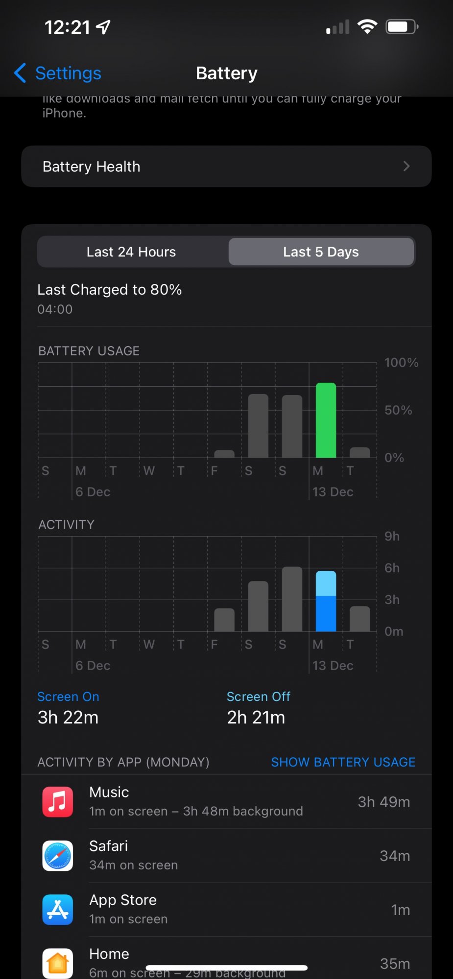 I got my Iphone 13 Pro on 20th November, the battery performance is not as I had heard and seen in the review. Ive been trying to be very conservative in my usage, with Instagram being the most used app. The background app usages are very high. Turned background Refresh off for Instagram and WhatsApp today, will wait to see results ahead. Also i had heard that there literally no/Minimal battery discharge if left unused overnight, but the story here is completely different, it trained 14% overnight.