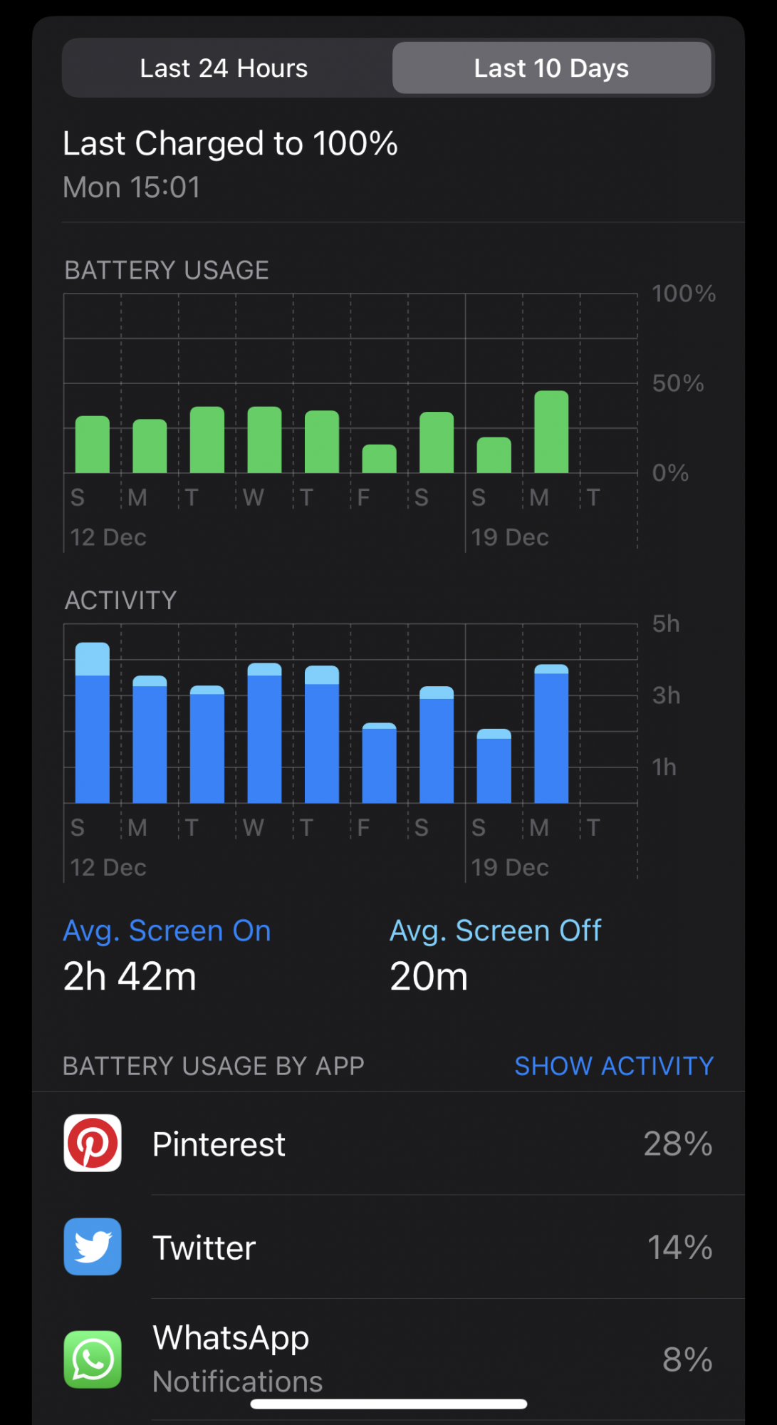 Those are my stats, 10 days new iPhone 13 Pro. Charged at 8 am now at 12pm is already 85 %.