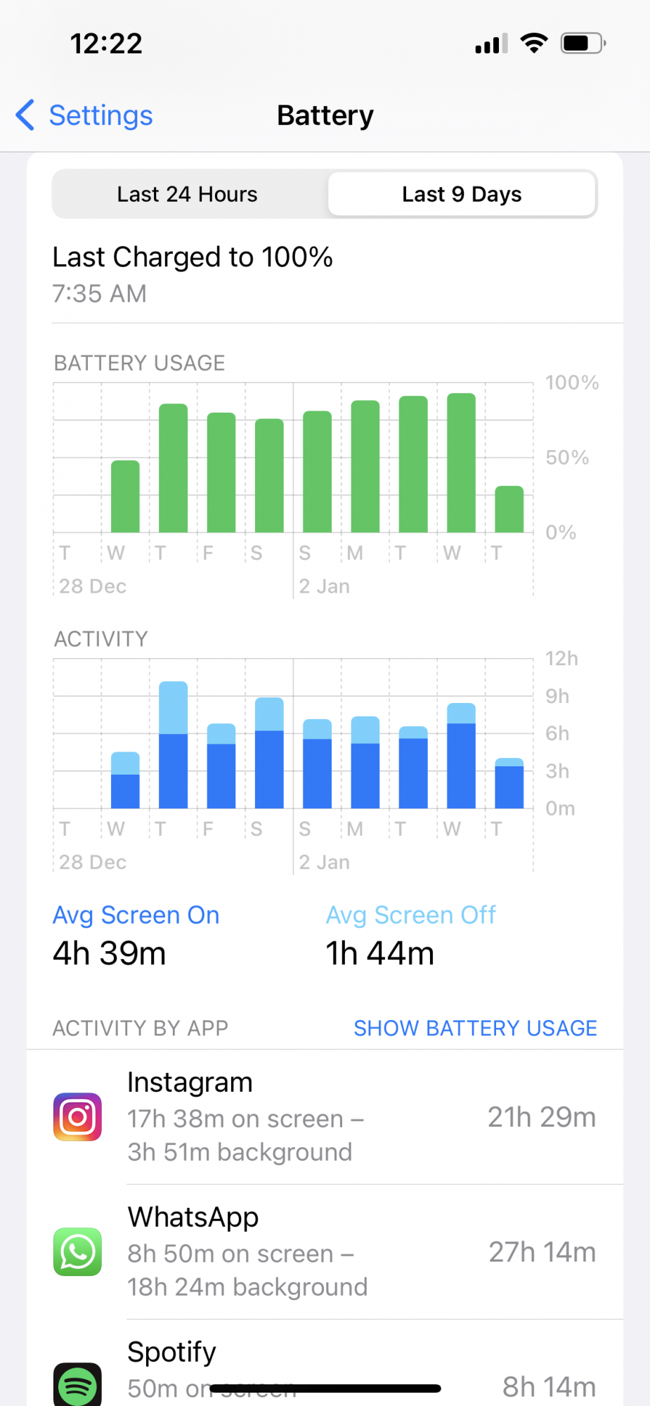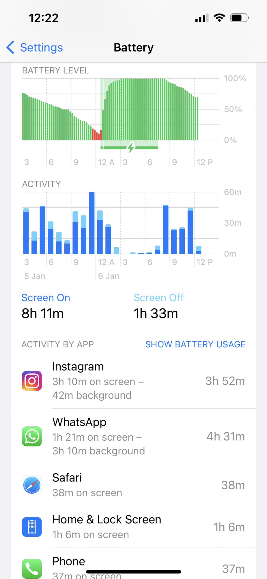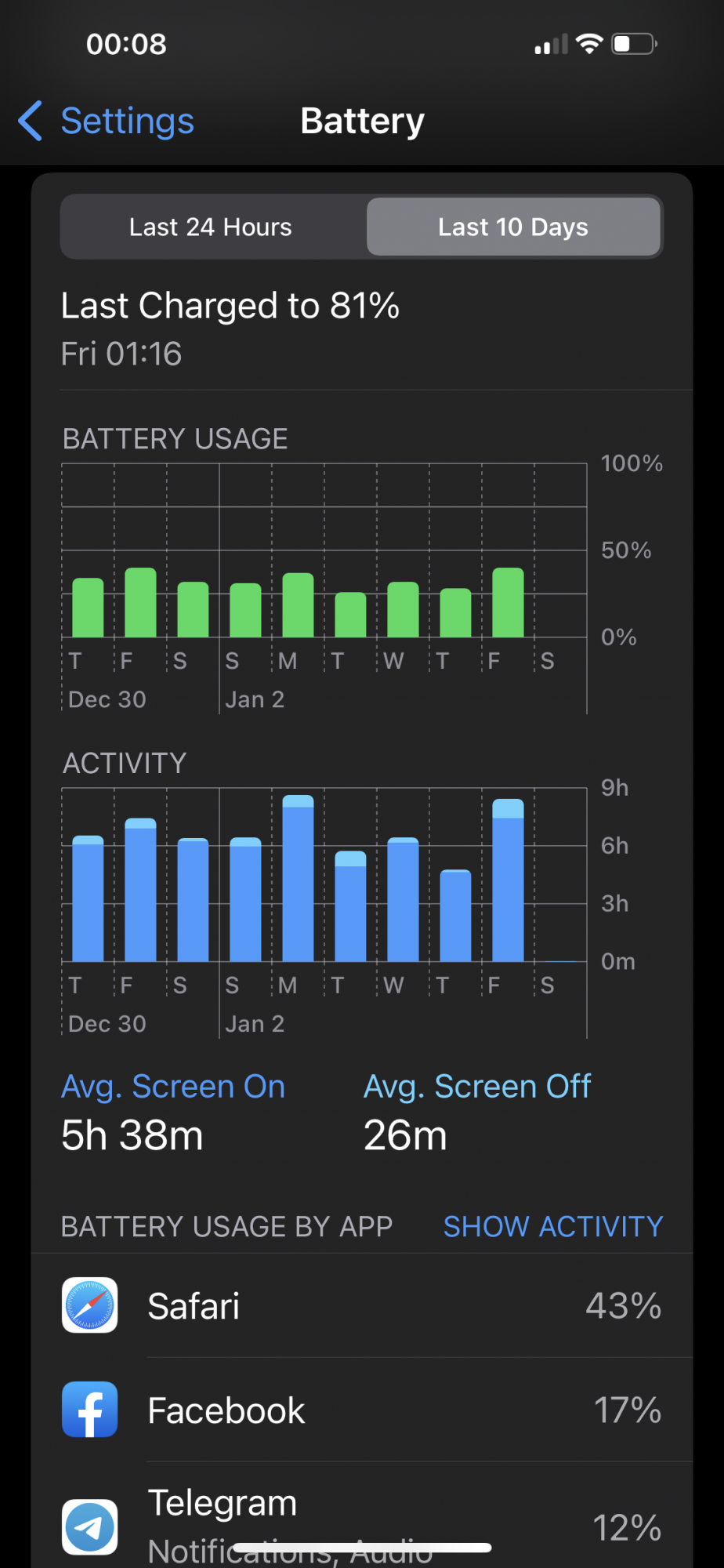 Anyway, battery use is pretty much the same after setting up the phone as new. around 6h SoT over 24h of standby. But it's true that I have an iMac at home, and I work from home, so maybe the phone is connecting to the Mac for continuity, and that takes a toll (no, it doesn't connect to finder over WiFi). In fact I noticed more autonomy when I was in a hotel on a trip. Food for thought.