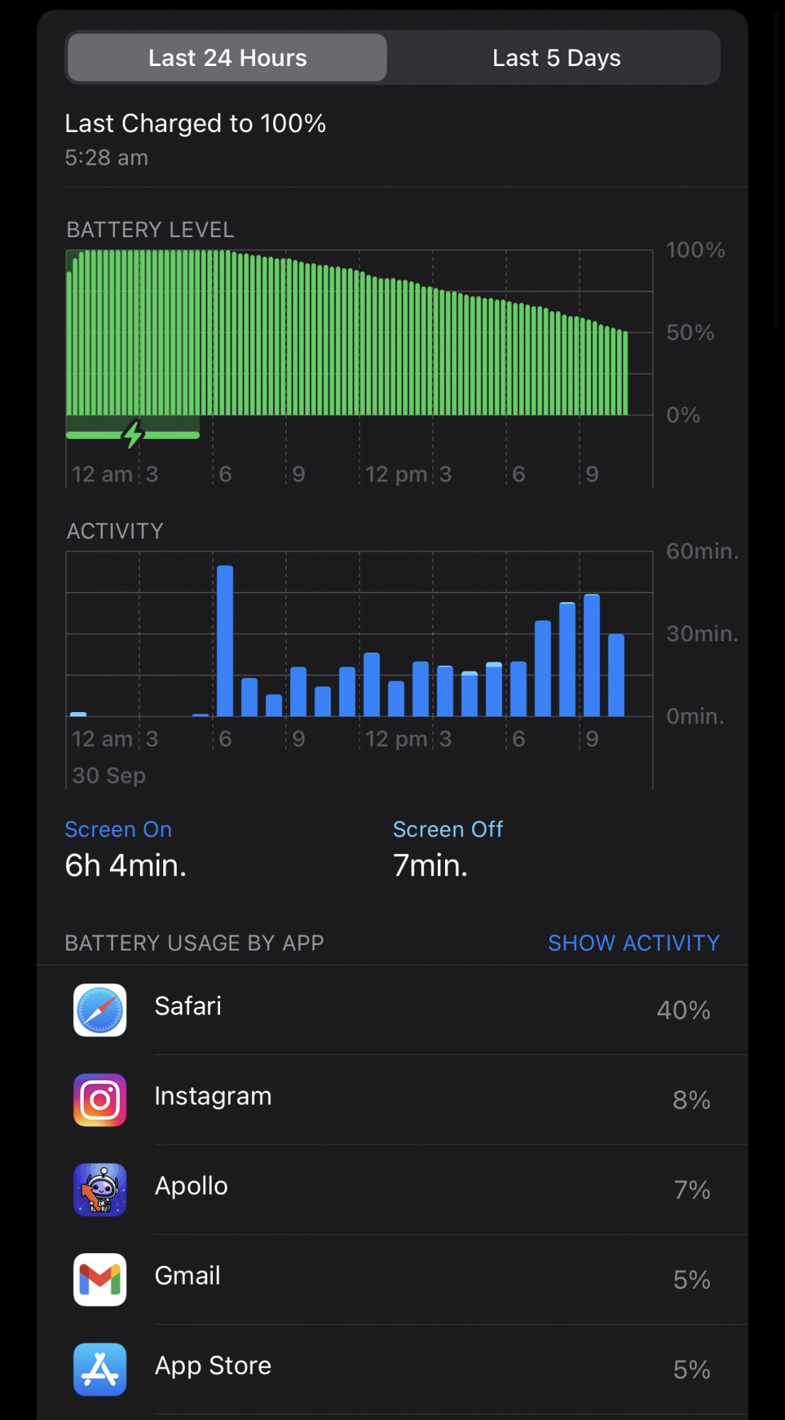11pm 50% battery left
