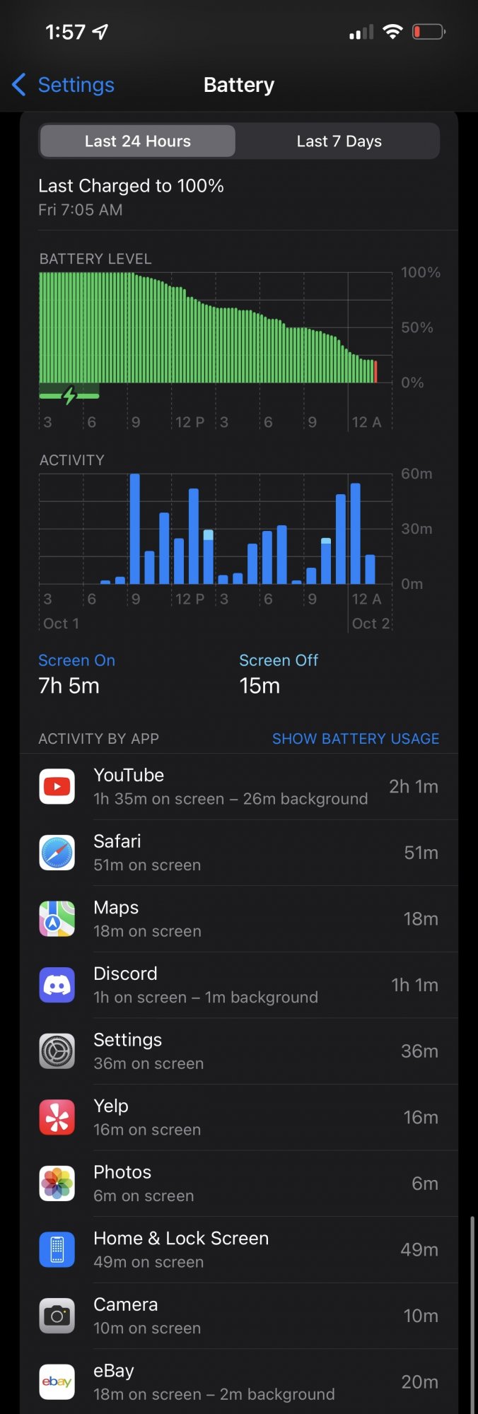 So what’s the remaining %? Can’t tell from the graph… 40%? 45%?Only way I’m going to kill this battery in a day, is by putting it on cellular and cranking brightness up to 100% lol