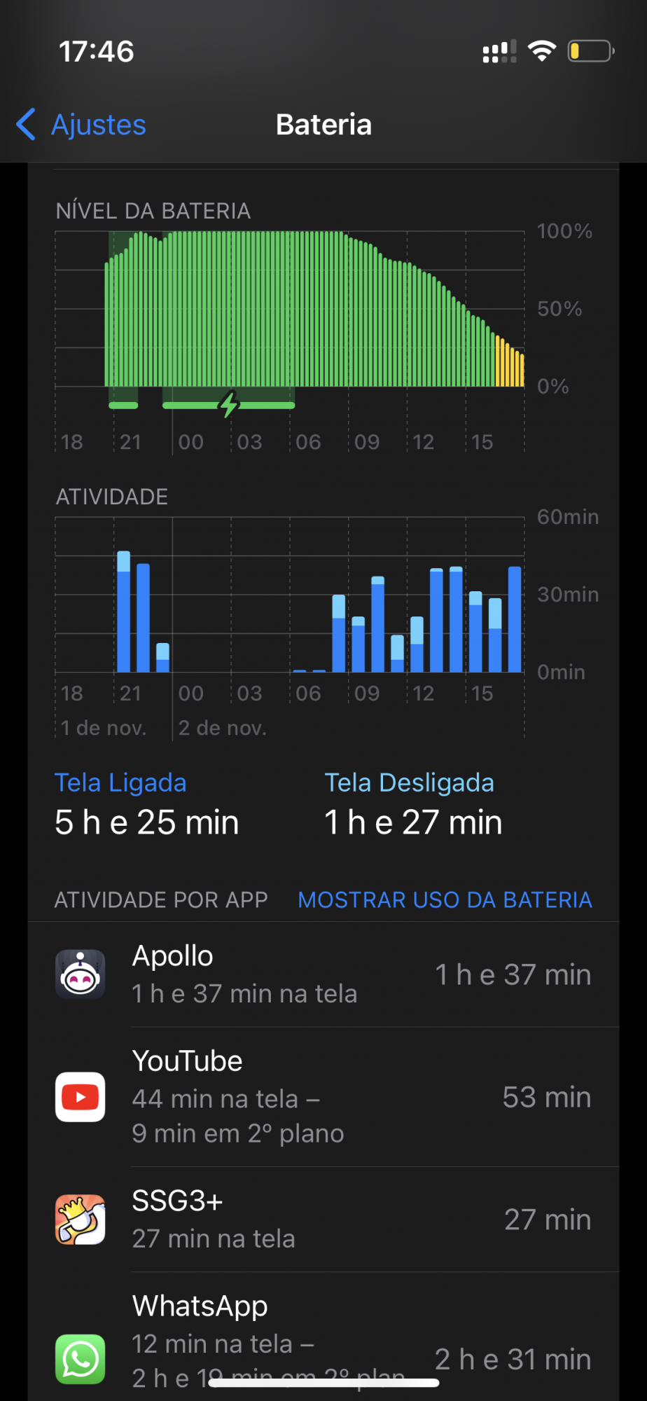 What’s 18PM ? Like 6PM? 🤣Yesterday I've done a fresh setup, Today got it out of the charger at 6AM, now it's almost 18PM and it's with 20% battery and 5 and a half hours of screen time. Almost the same as yesterday but vastly improved im my opinion, since yesterday I did almost nothing with it except for some youtube and half an hour of gamming, today I really tried to do things in it, more than I do on a normal day, just to see how far it would go. I think that 5h30 screen time with dual SIM active and on wifi 85% of the time on a area with bad tower coverage (no 5G in my country, only 4g) seens decent enough, I think.... If I had it go for 10%on battery probably I would be able to extract one more hour of screen time on light usage.