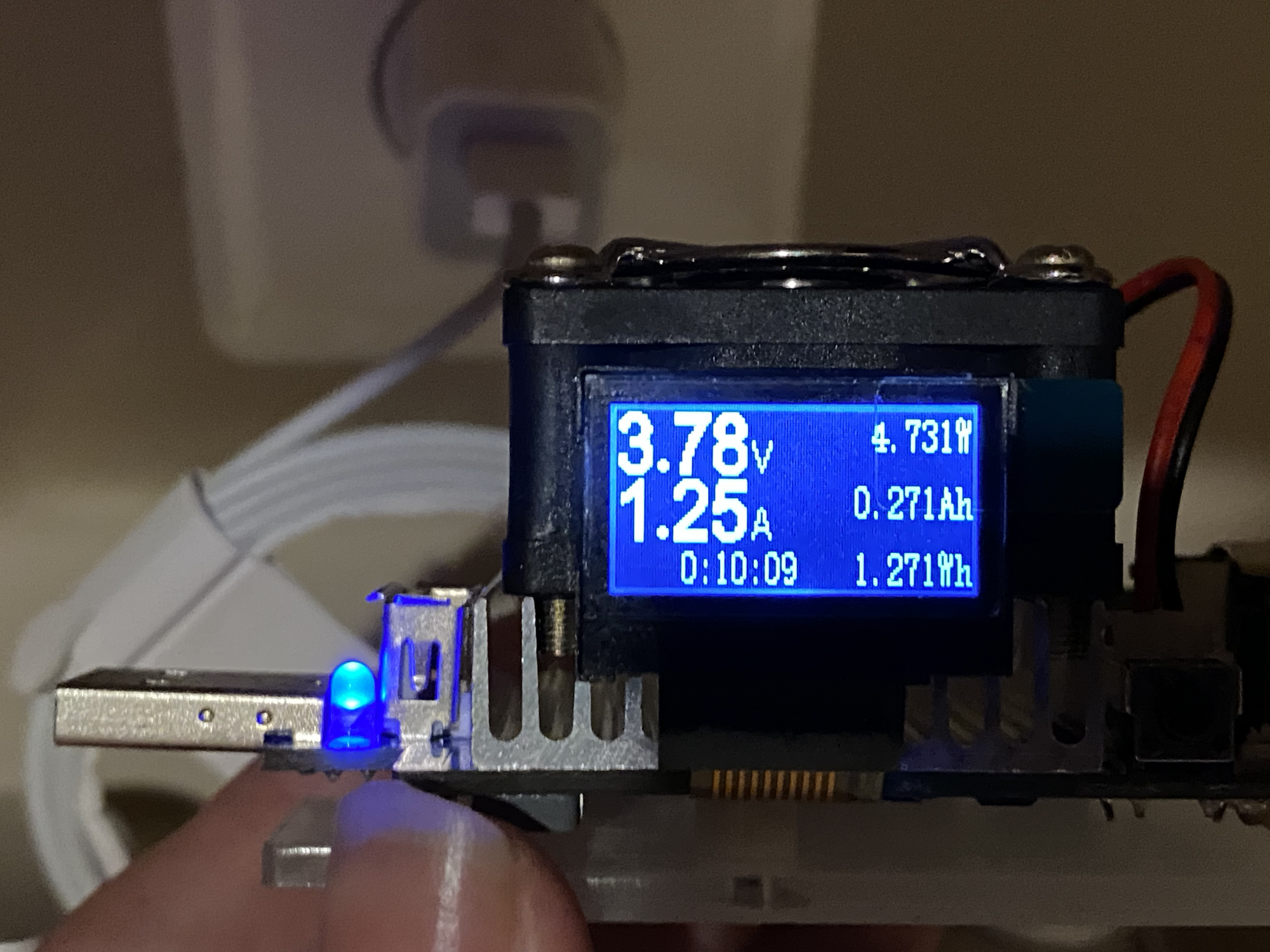 This is a picture of a USB tester that you can emulate a load on the charger to see how it responds. Using a brand new still packaged Apple Lightning cable with Apples 5w brick I can only get to 4.7 watt before the power supply shuts off on its internal safety.