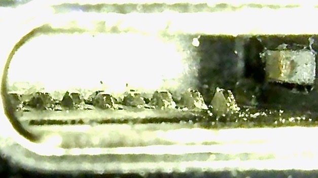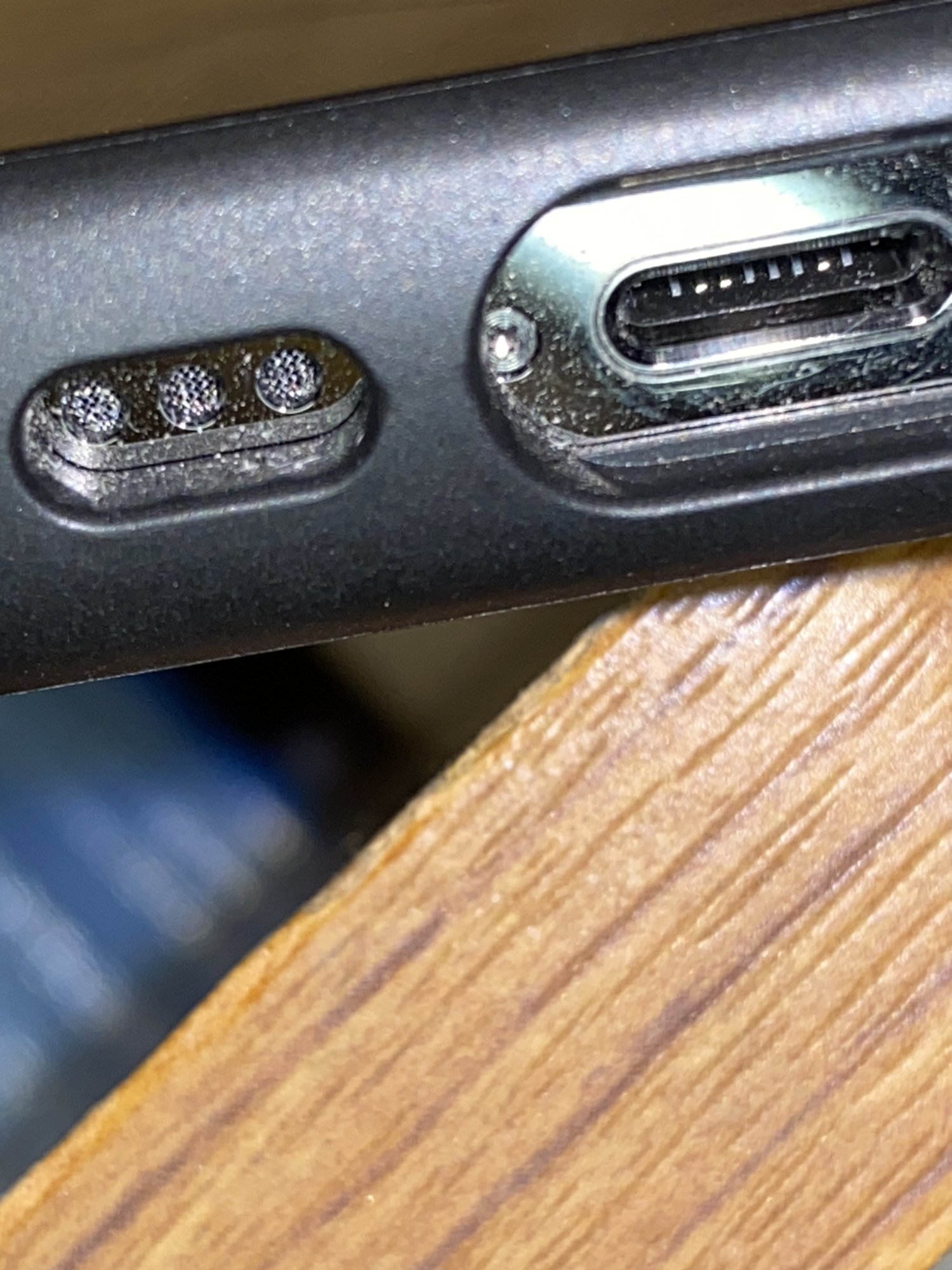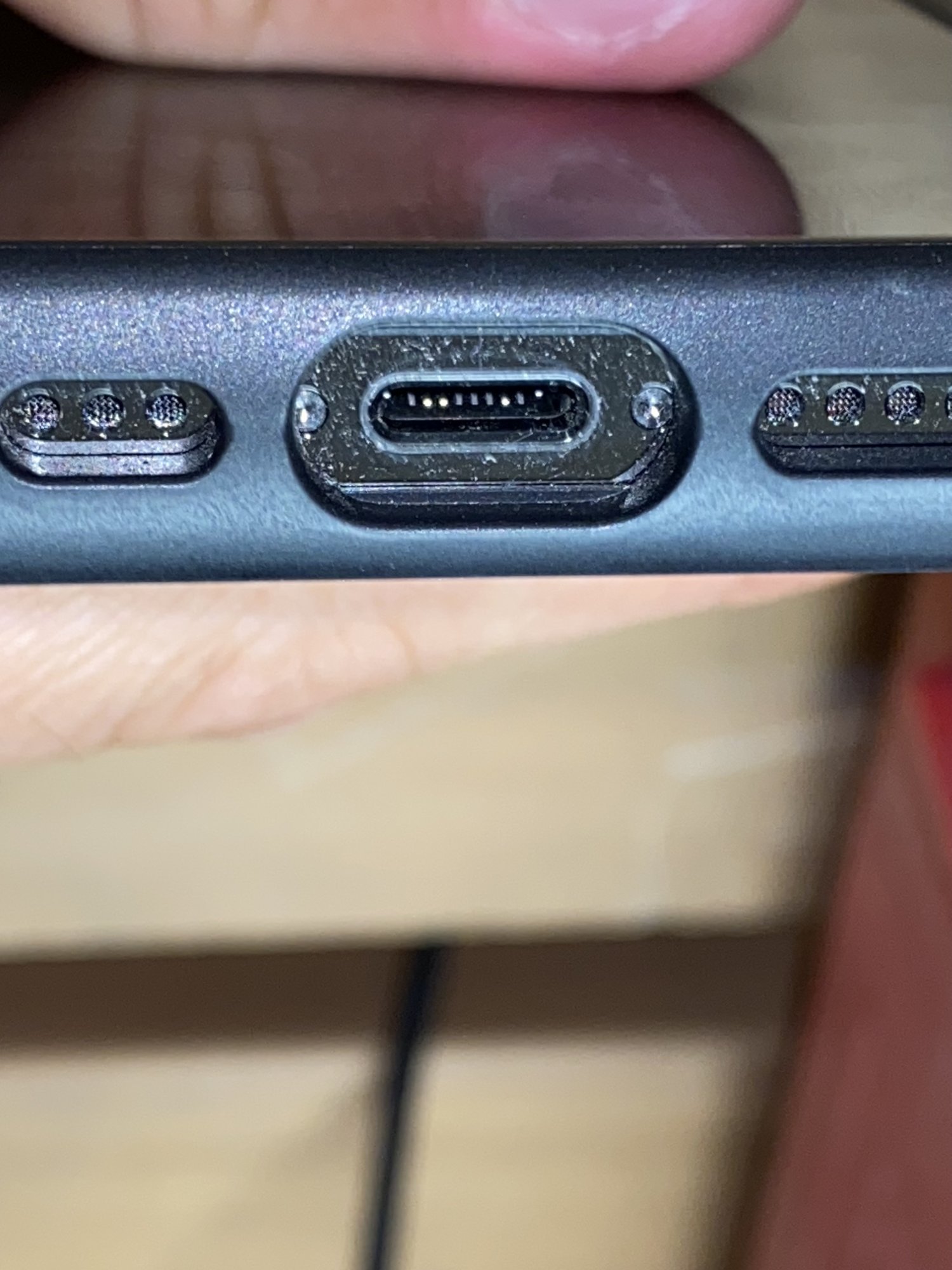 Third, the pins/contacts aren't just little flaps of bent metal they are like little wedges. They are relatively robust by consumer connector standards. As we've seen they are designed to last the useable life of the device plus some. Excuse the photo quality this was more difficult to get a good picture of than I would have thought but this is my iPhone 11 PM so you can see what "little wedges" I'm referring to.