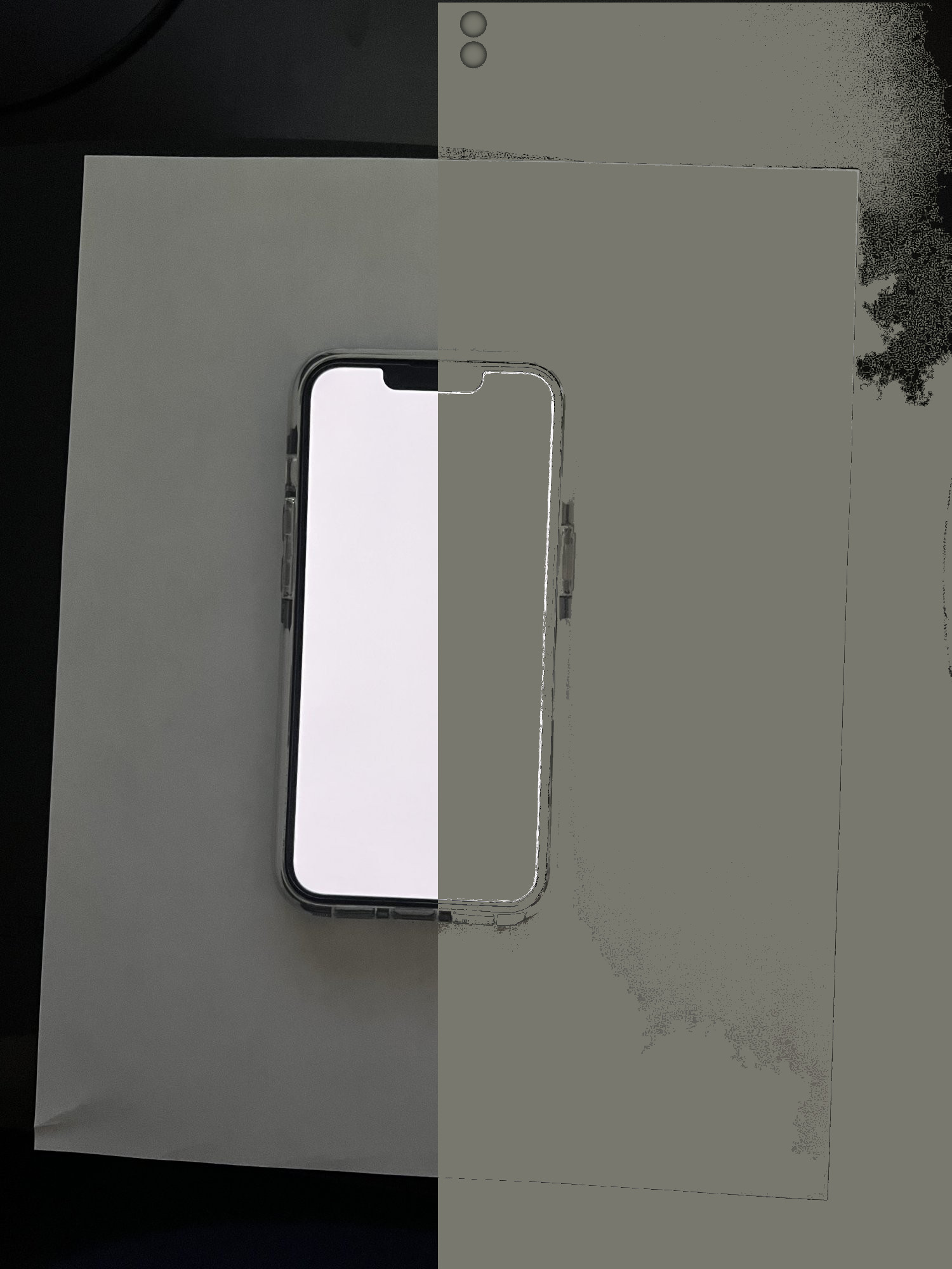 Someone posted a picture above somewhere with their iPhone sitting on a "white" sheet of paper. Toward the top of the page I pulled the color from the top part of the paper and filled in the right side of the image with its "white".
