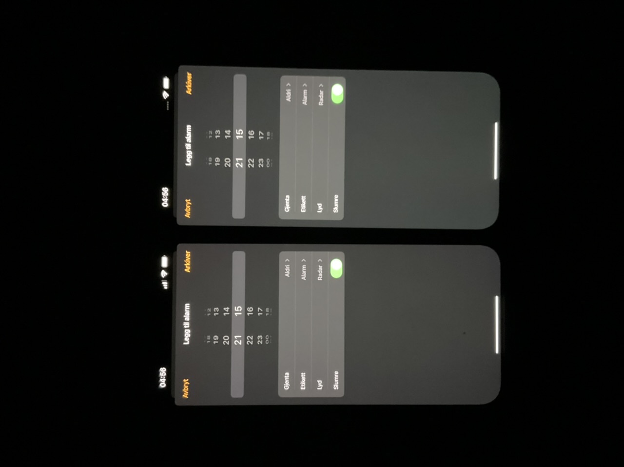 All pictures were taken with auto brightness off and True Tone off in a totally dark room.