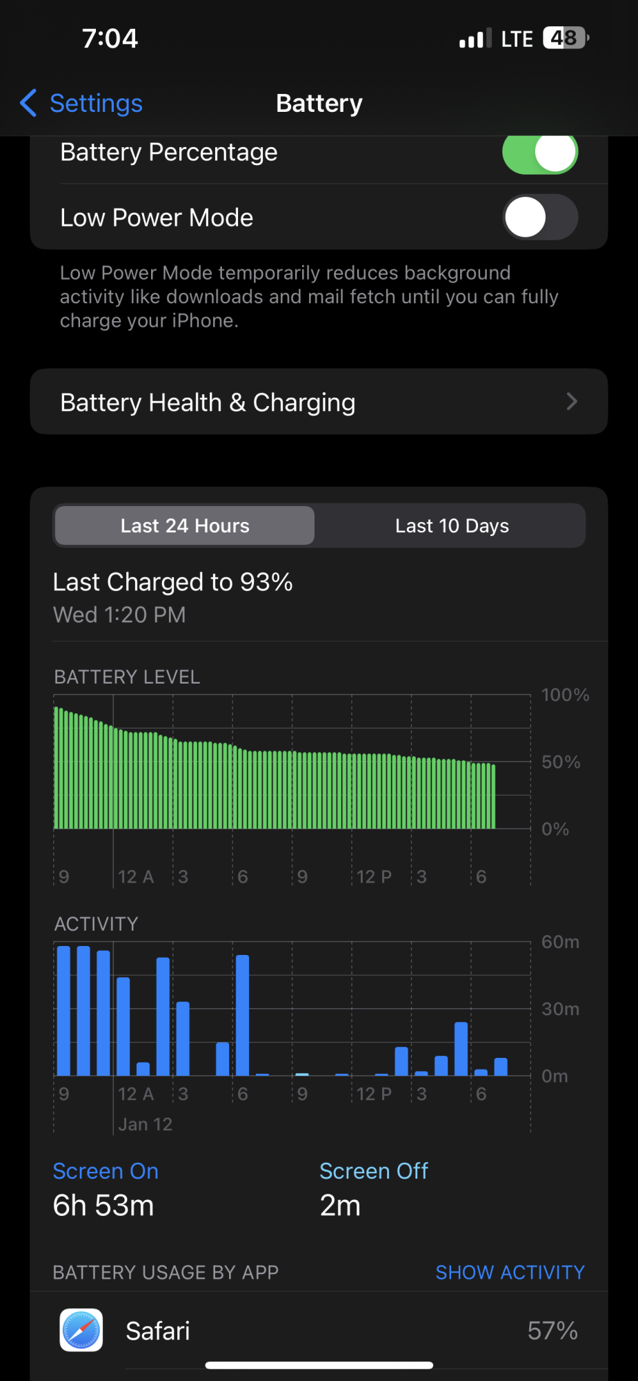 That... is outstanding. 7 hours from 19:04 yesterday to 19:04 today, and we don’t even know whether you used it from 13:20 to 19:04 yesterday, so, presumably, it’s even higher than that. At least 7 hours with 45% used, probably more, but extrapolating: at least 16 hours of SOT 100-0%, if not more. One of the best results I’ve seen here, impressive.